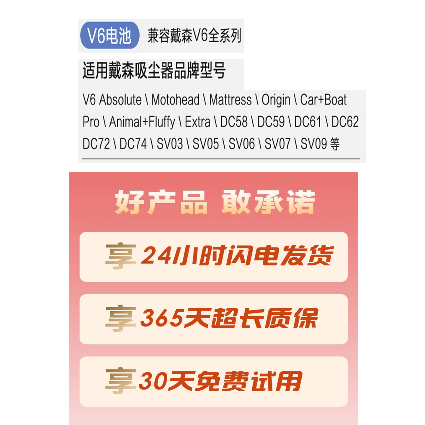 DC61 适配Dyson戴森吸尘器V6电池配件DC62 DC72 DC58 SV09等 SV06