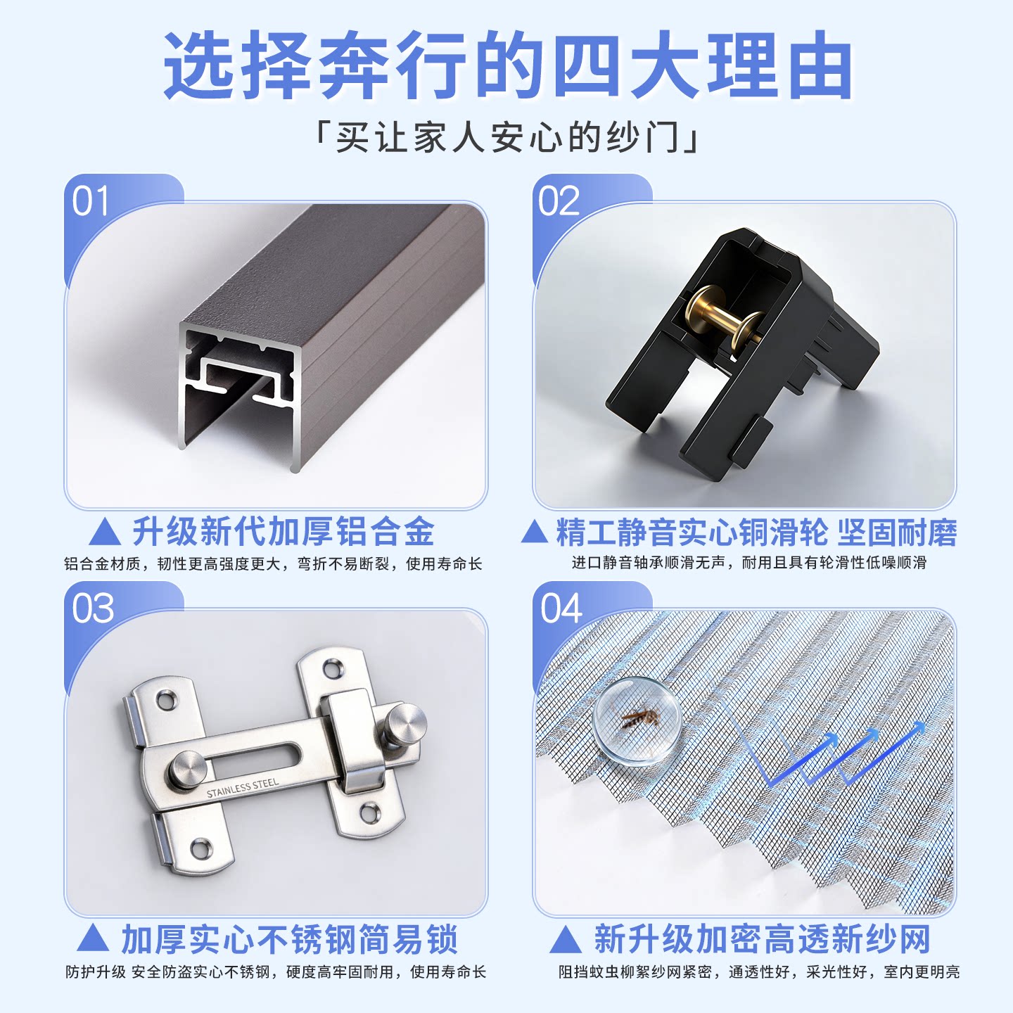 为您提供商品伸缩防蚊门家用纱窗门帘免打孔铝合金刚网沙门 隐形折叠纱门推拉式的详细介绍,