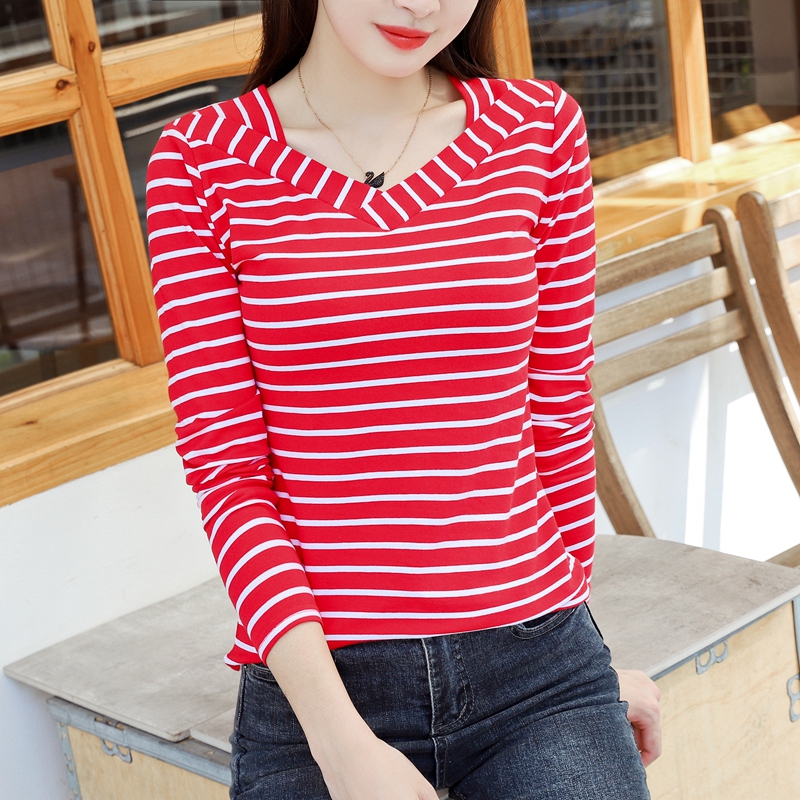 ⭐小红书推荐⭐显瘦V领百搭体恤打底衫 潮 95棉韩版 长袖 条纹t恤女早秋新款 修身 女装,所属T恤分类,由淘宝网挑选推荐!小红书抖音网红同款!哪里有卖显瘦V领百搭体恤打底衫 潮 95棉韩版 长袖 条纹t恤女早秋新款 修身 女装和多少钱质量怎么样✅。