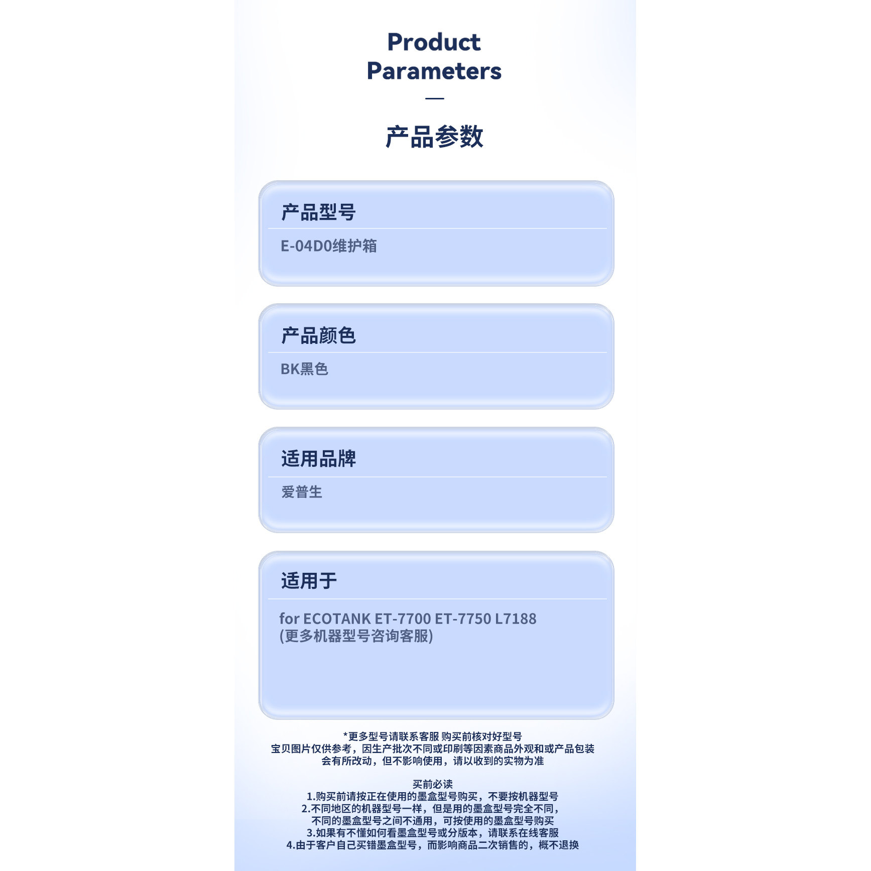 为您提供商品7750 废墨垫 雄彩适用爱普生T04D0维护箱EPSON 7700 L7160 L7180废墨仓T04D0 废墨仓维护箱L7188 L7188的详细介绍,