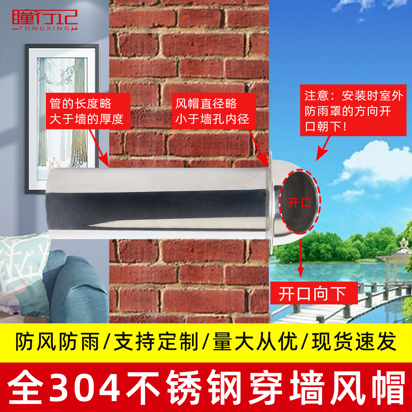 外墙出风口油烟机排烟管通风防风罩室外穿墙排气罩 304不锈钢风帽由