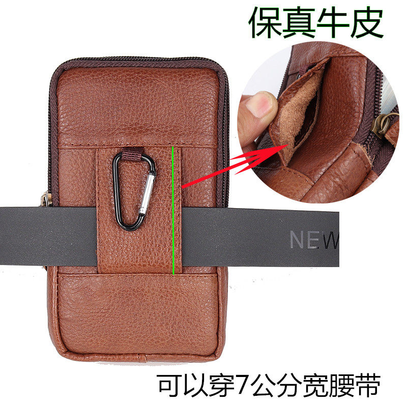 5.5寸手机包7寸 真皮手机腰包男牛皮穿皮带6寸腰挂包多功能竖款由
