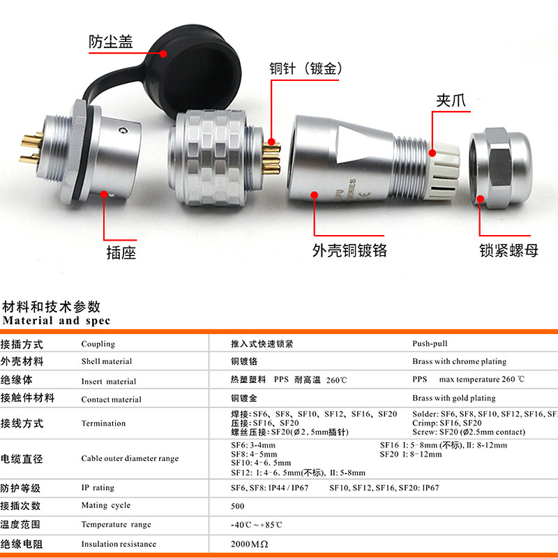 为您提供商品10芯IP67连接器接头 威浦防水航空插头 螺母插座SF16的详细介绍,