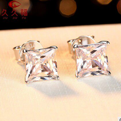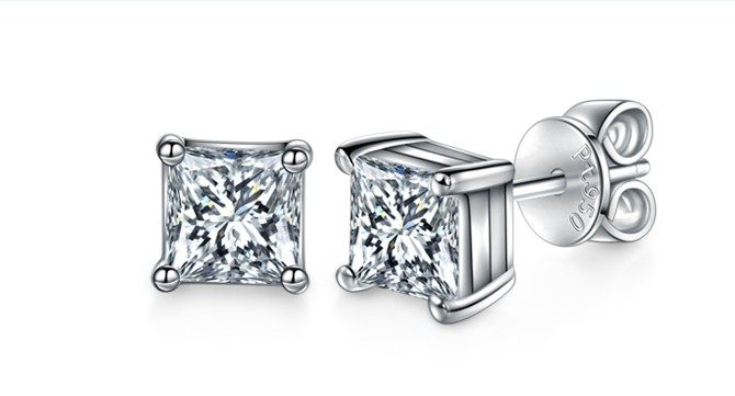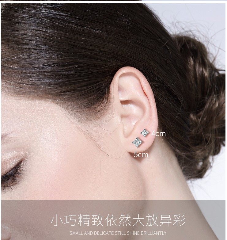 pt950铂金莫桑钻石耳钉小耳骨公主方清新透明百搭防过敏闪耀男女由