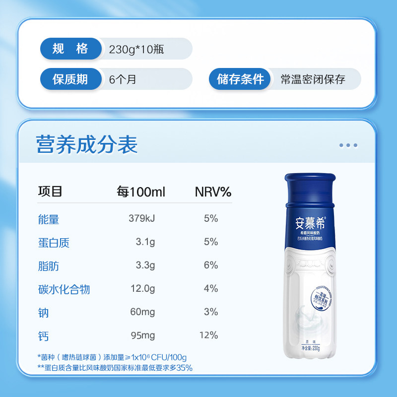 伊利安慕希高端畅饮原味酸奶230g 10瓶果肉酸牛奶整箱批特价由