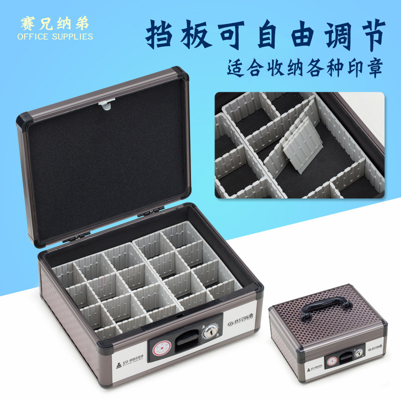 多功能财务装 印章收纳盒公章盒子便携式 印鉴章印章箱带锁分格印章收纳盒 包邮 锁可调节多格 铝合金手提式 带密码