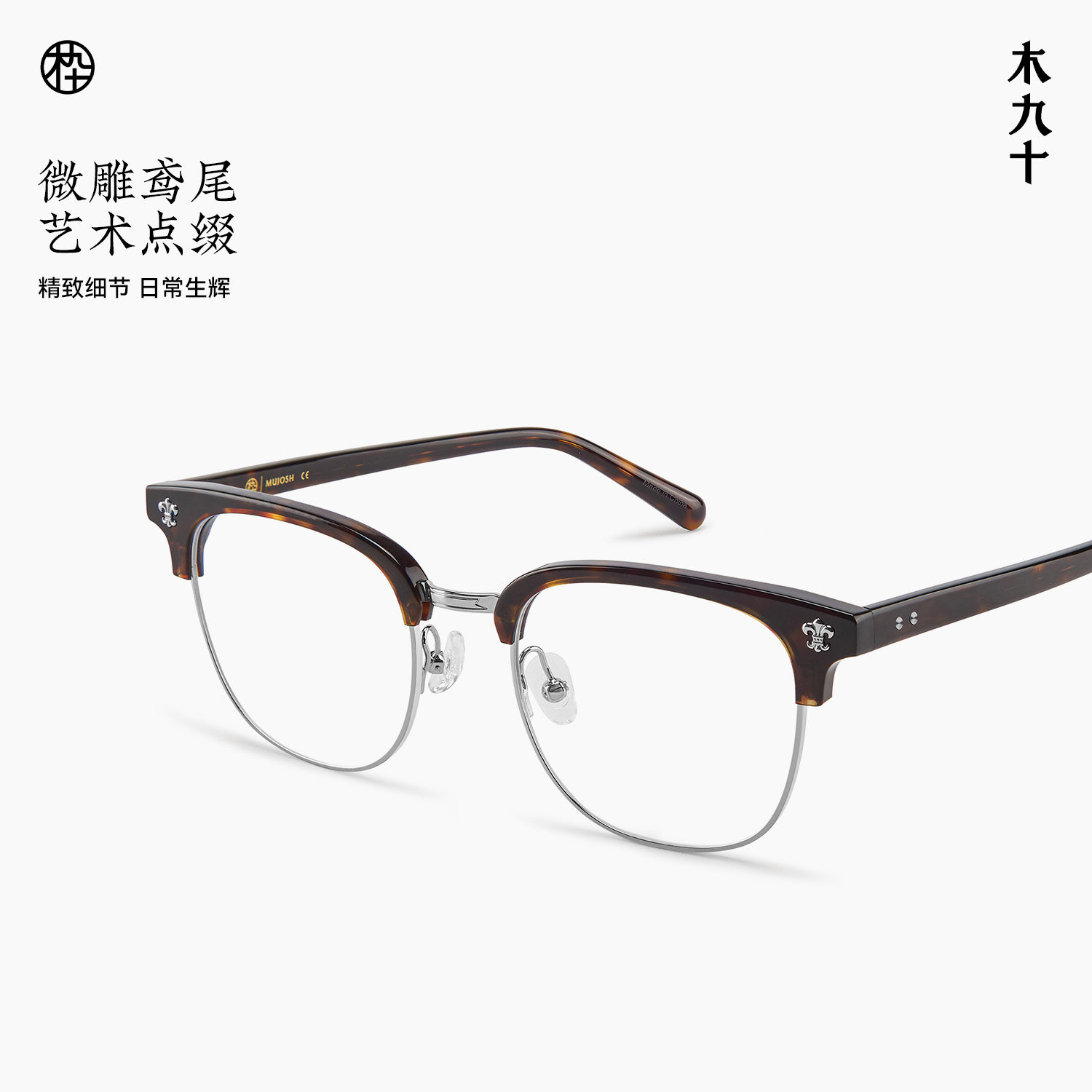 为您提供商品木九十半框眼镜商务眉架近视可配度数玳瑁克 镜框FN2003 罗心风格的详细介绍,