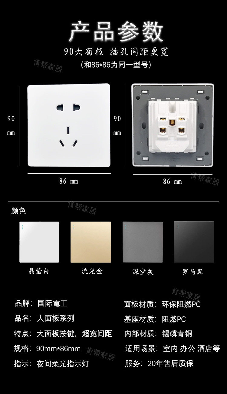 电视电话网络面板一开五孔插座三孔插座 开关插座面板家用86型暗装