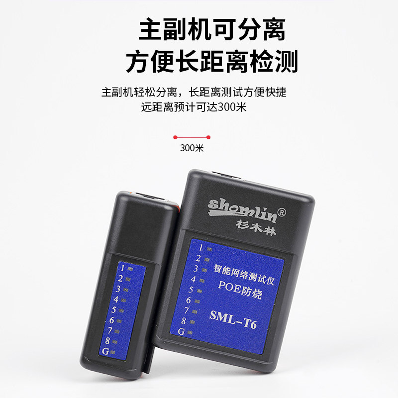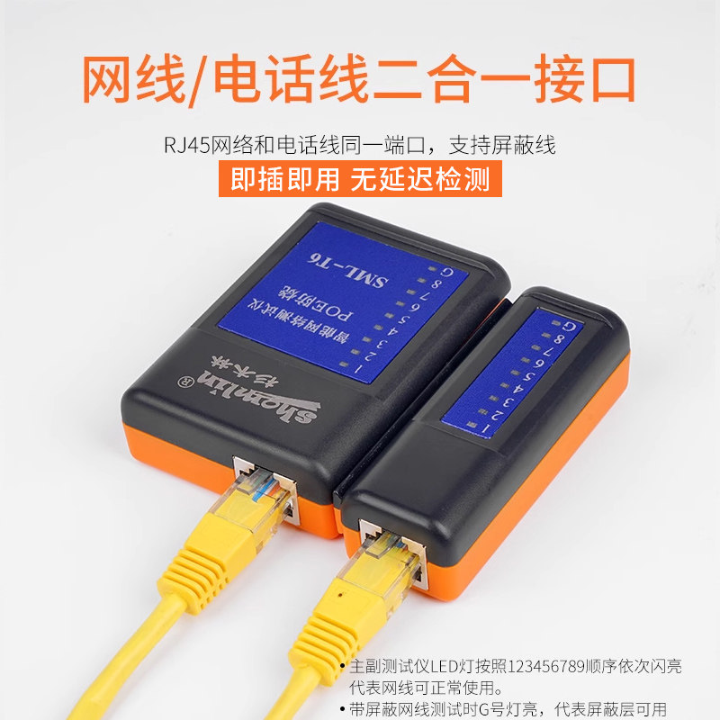 T6网线测线仪电工强电网线无延时测试仪无开关POE防烧测线器测试仪器迷你型电话线网线检测器两用 杉木林SML