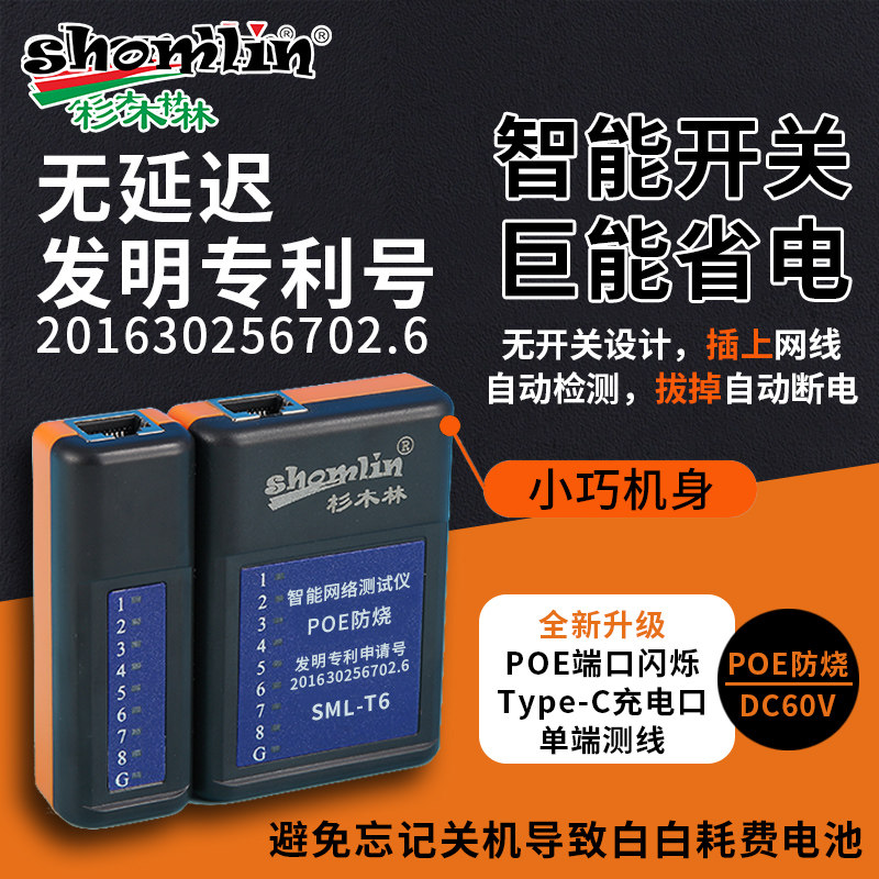 为您提供商品T6网线测线仪电工强电网线无延时测试仪无开关POE防烧测线器测试仪器迷你型电话线网线检测器两用 杉木林SML的详细介绍,