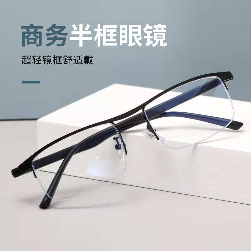 商务半框眼睛架定制成品光学镜可配度数近视框眼镜防蓝光 狂飙男士