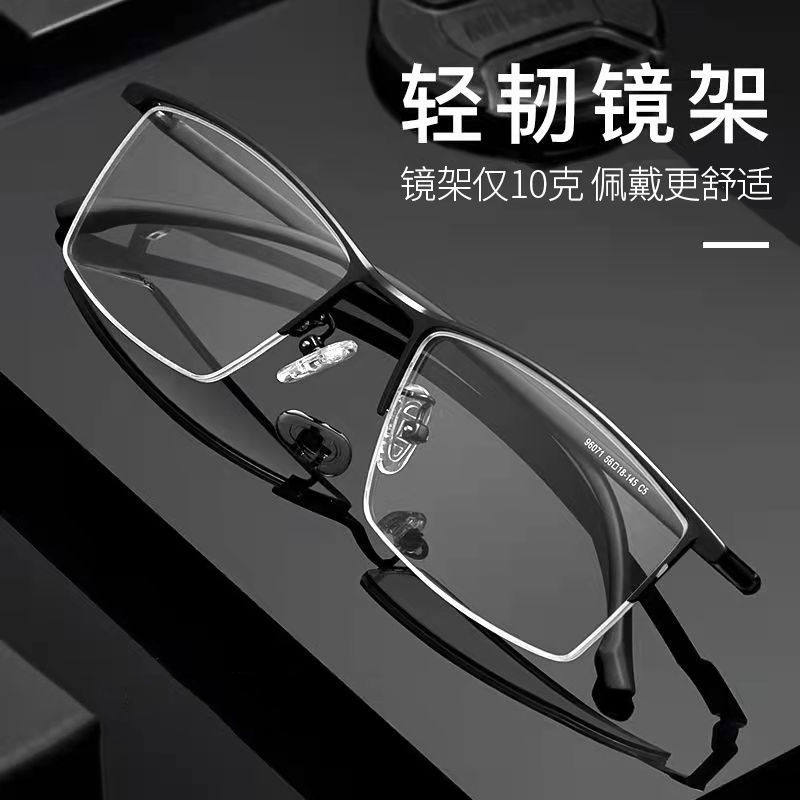 可配度数近视框眼镜防蓝光 半框商务眼睛架大脸定制成品光学镜男士