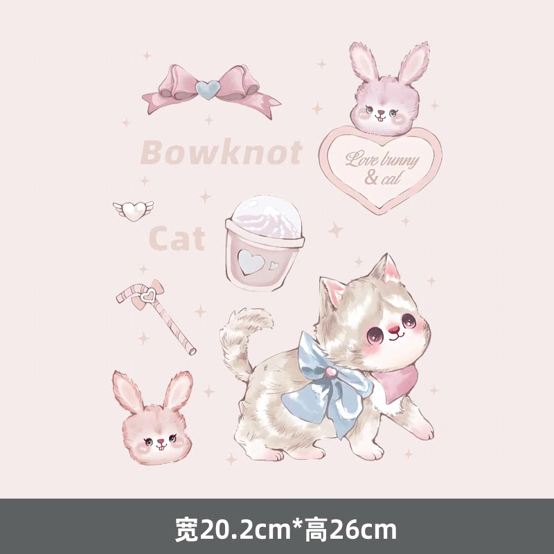 印花T恤卫衣图案热转印胶印白墨烫画 可爱优雅猫咪蝴蝶潮牌新款