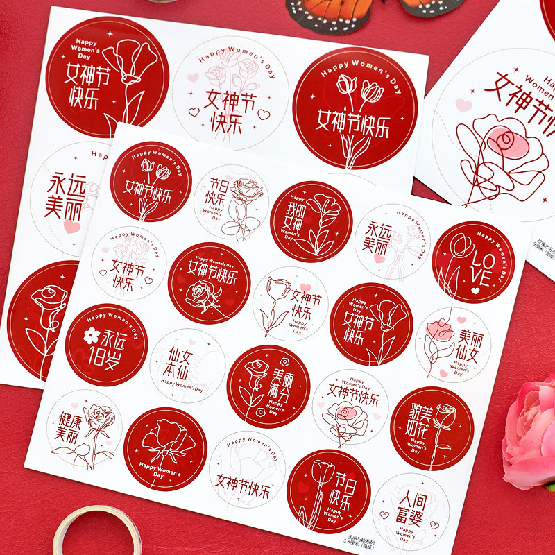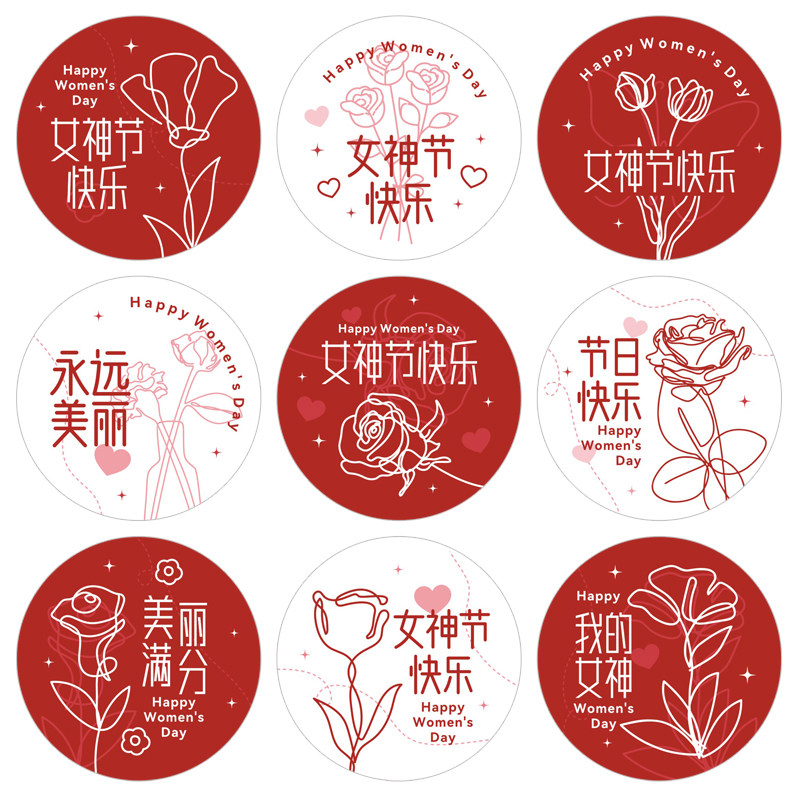 饰圆形贴画公司员工职员福利甜品店蛋糕奶茶杯标签贴纸包感恩女神妈妈小图标 38三八妇女节礼物封口贴礼品袋装由