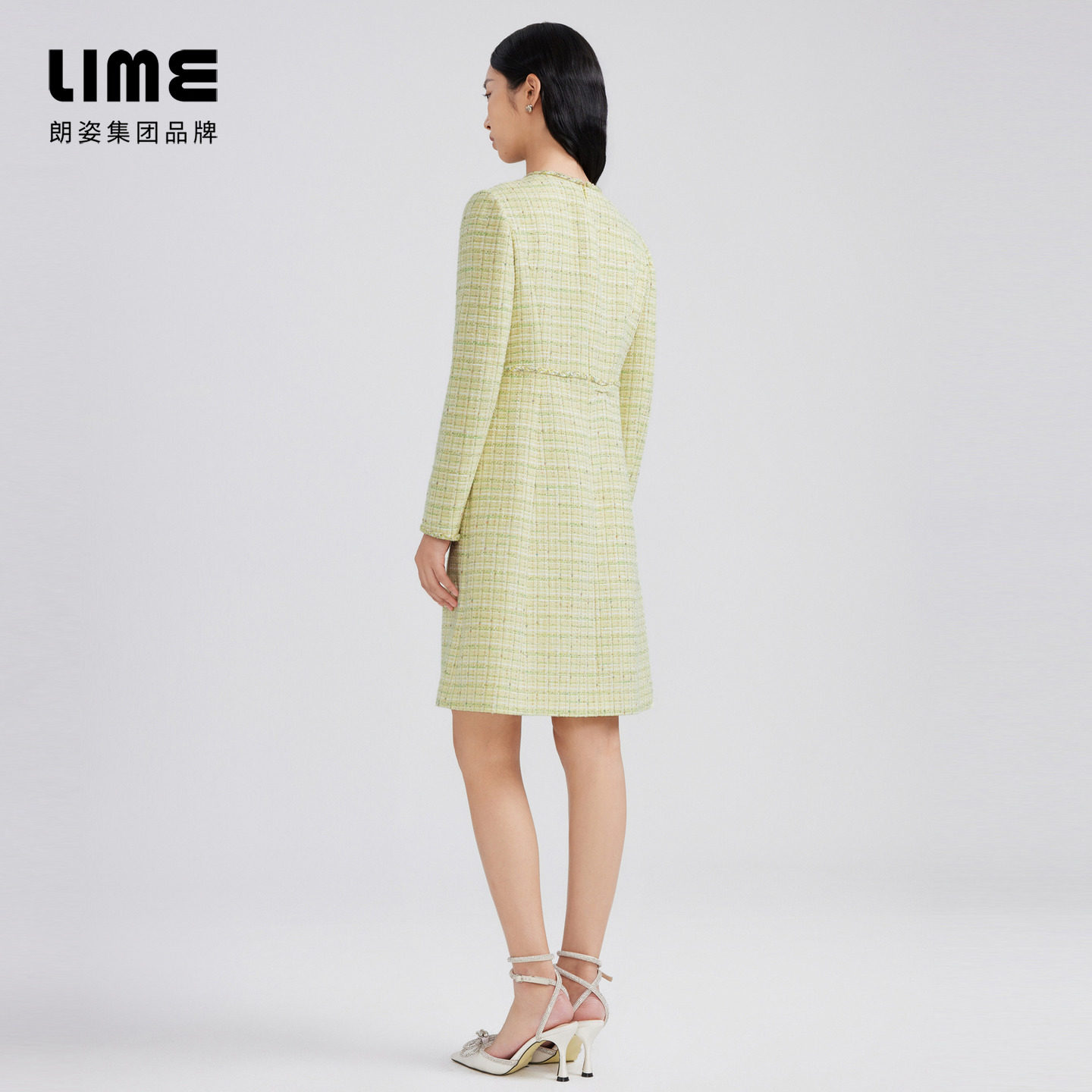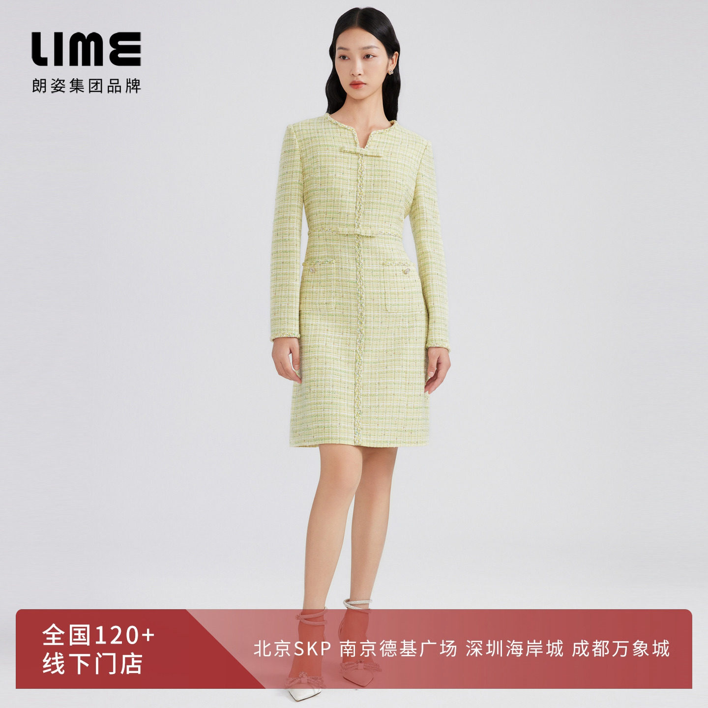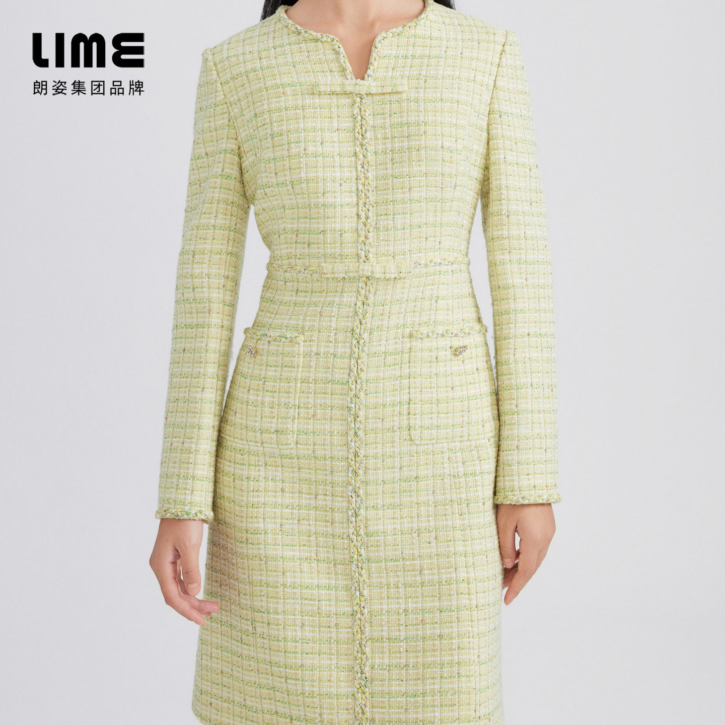为您提供商品LIME莱茵年早春新款 收腰小香风裙子 粗花呢连衣裙柠檬黄色新中式的详细介绍,
