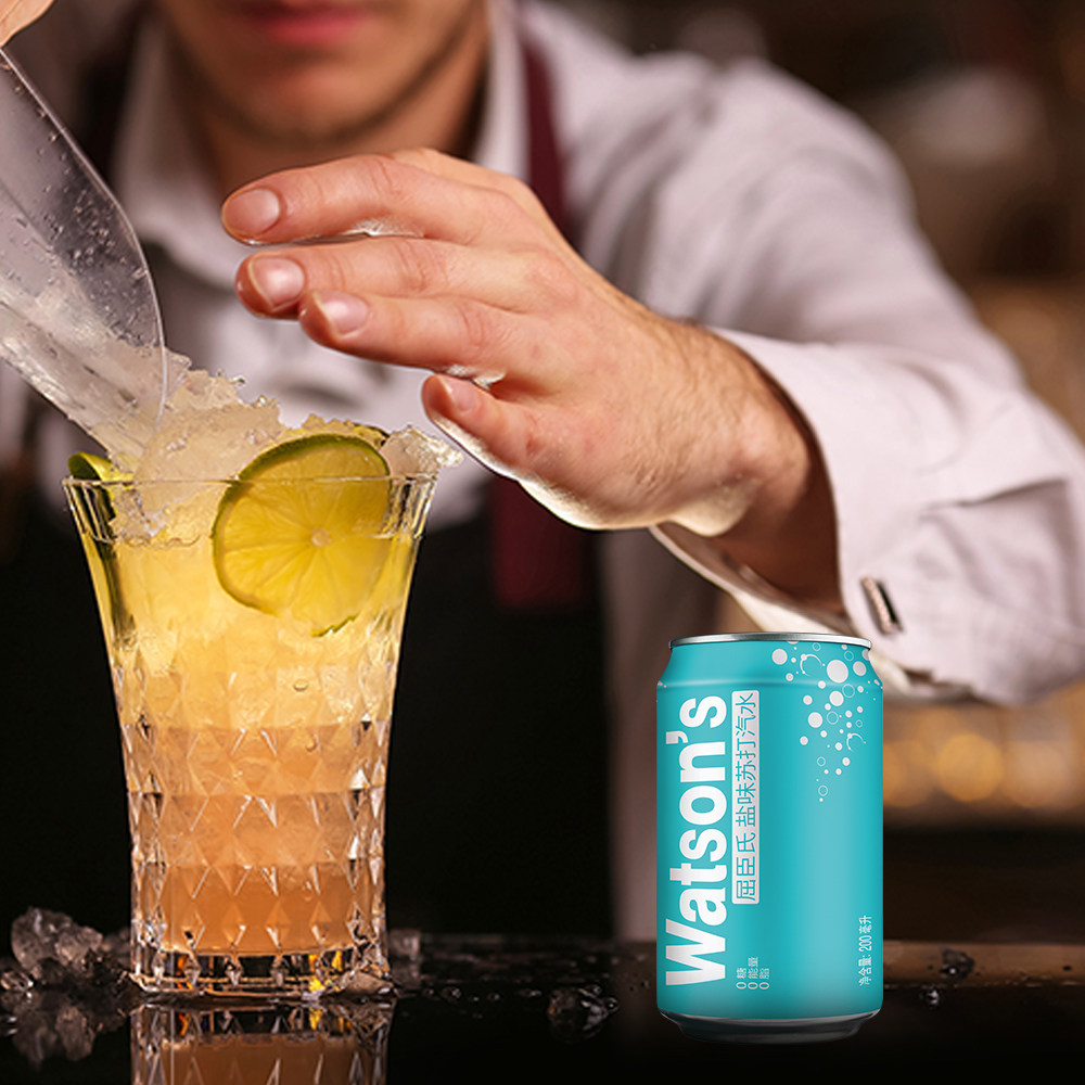 屈臣氏原味苏打水0糖0卡调酒气泡水碳酸饮料黑罐无糖整箱调酒调饮