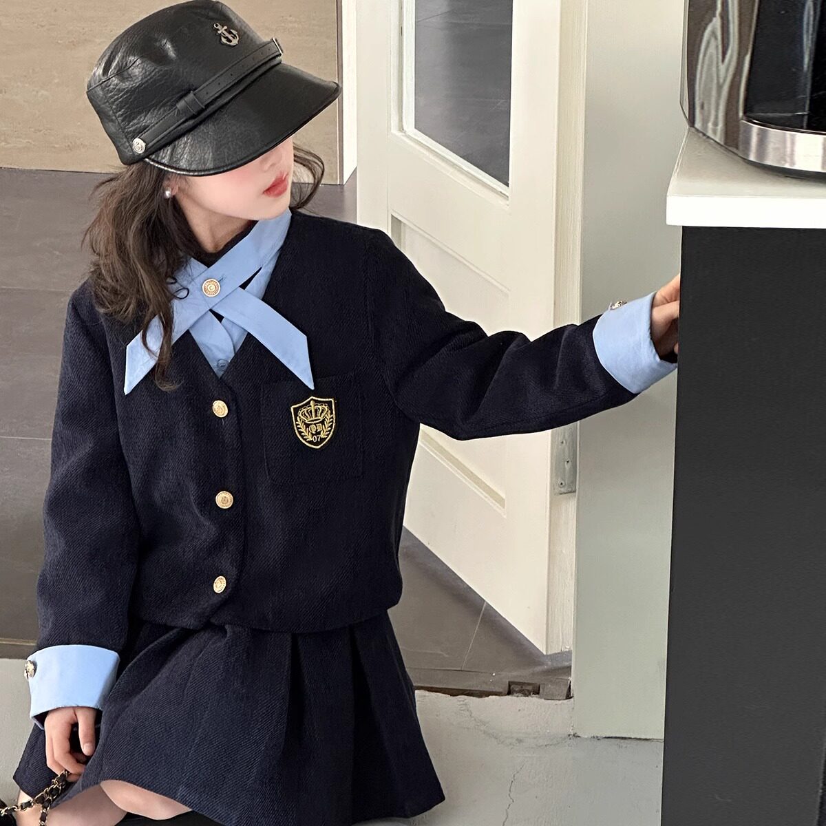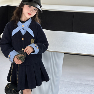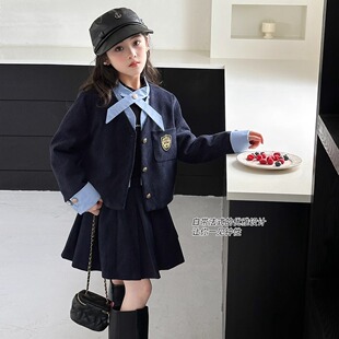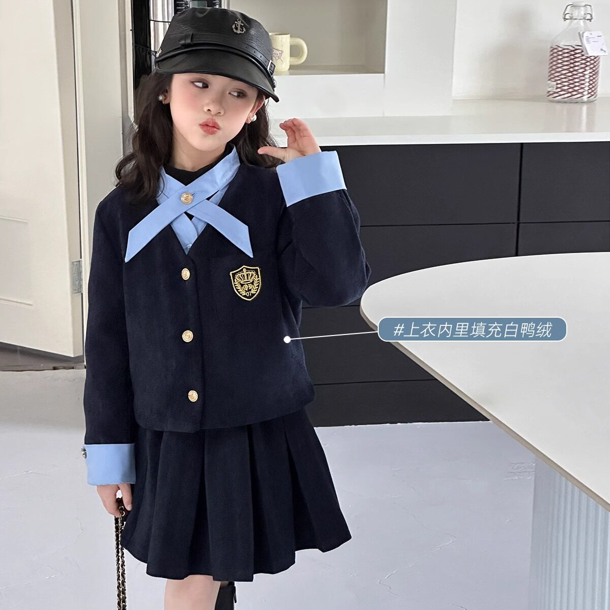女童羽绒服外套2025冬季 儿童保暖学院风加厚假两件上衣裙子 新款