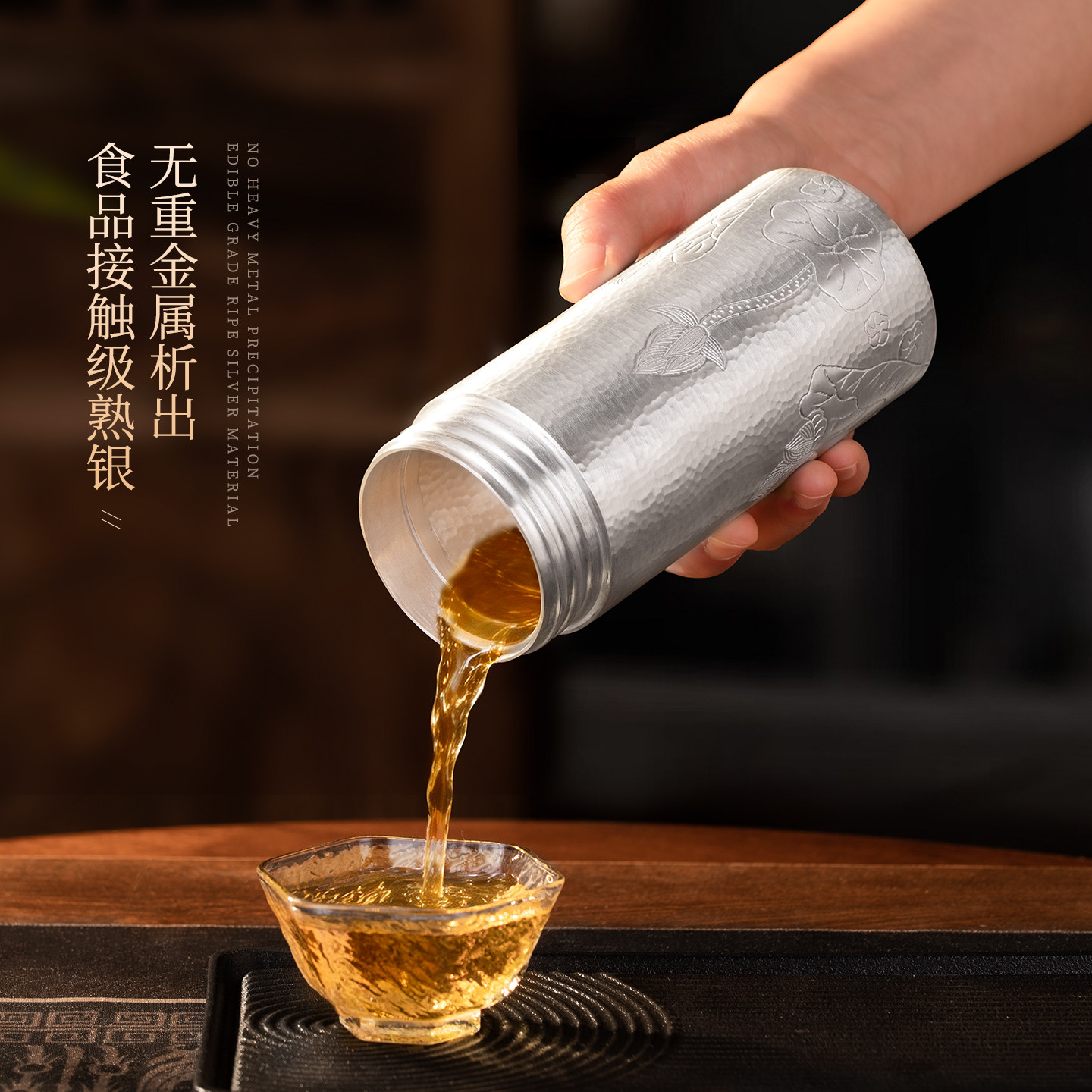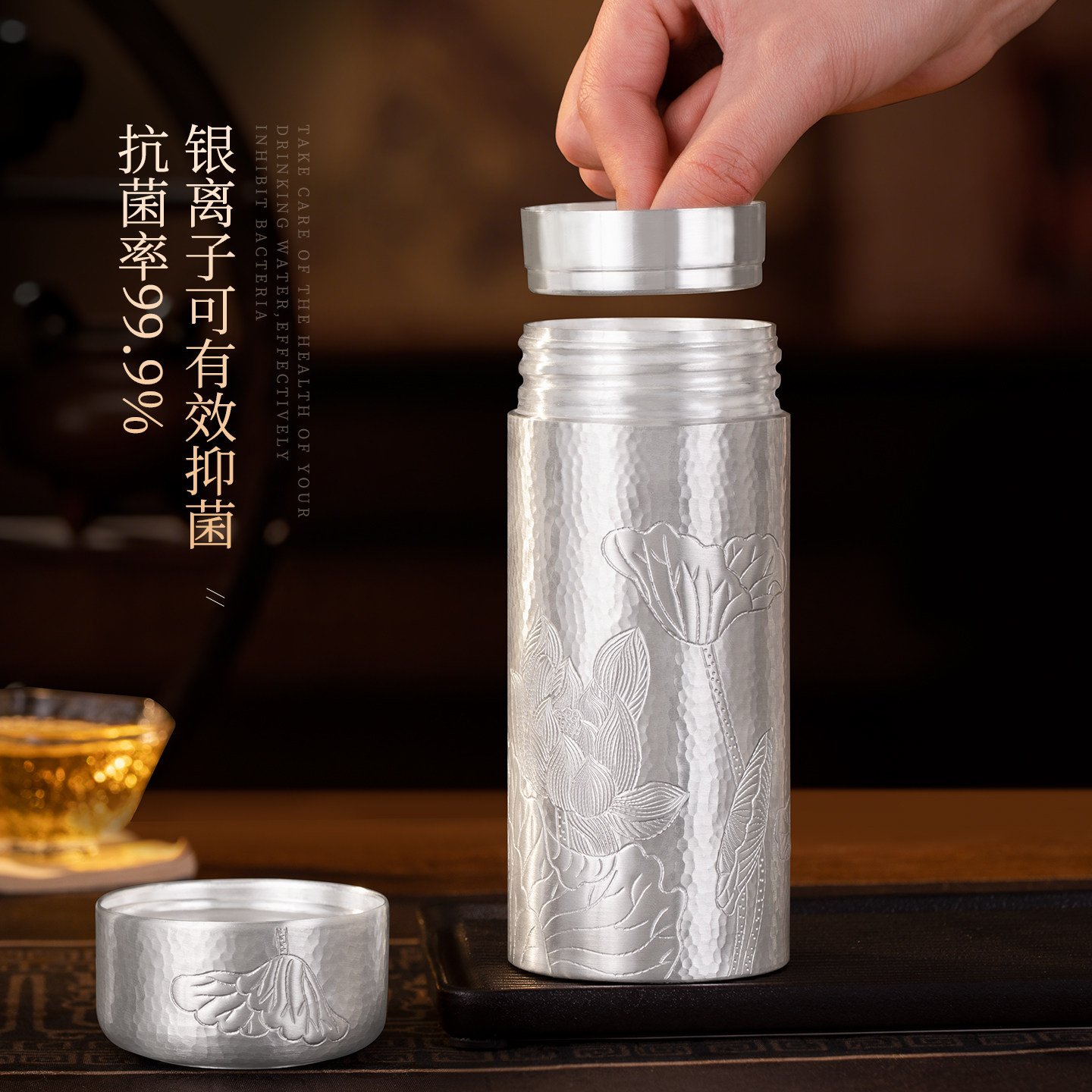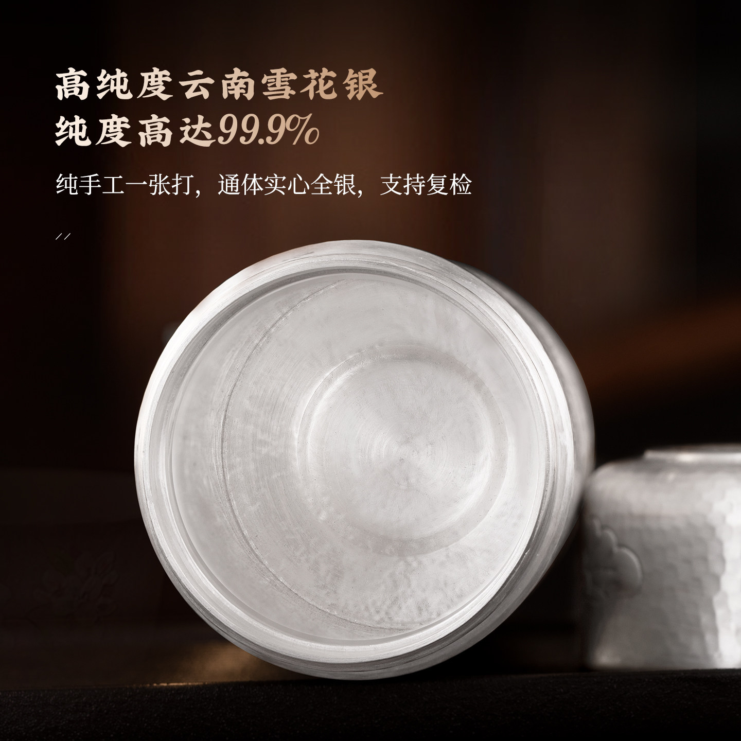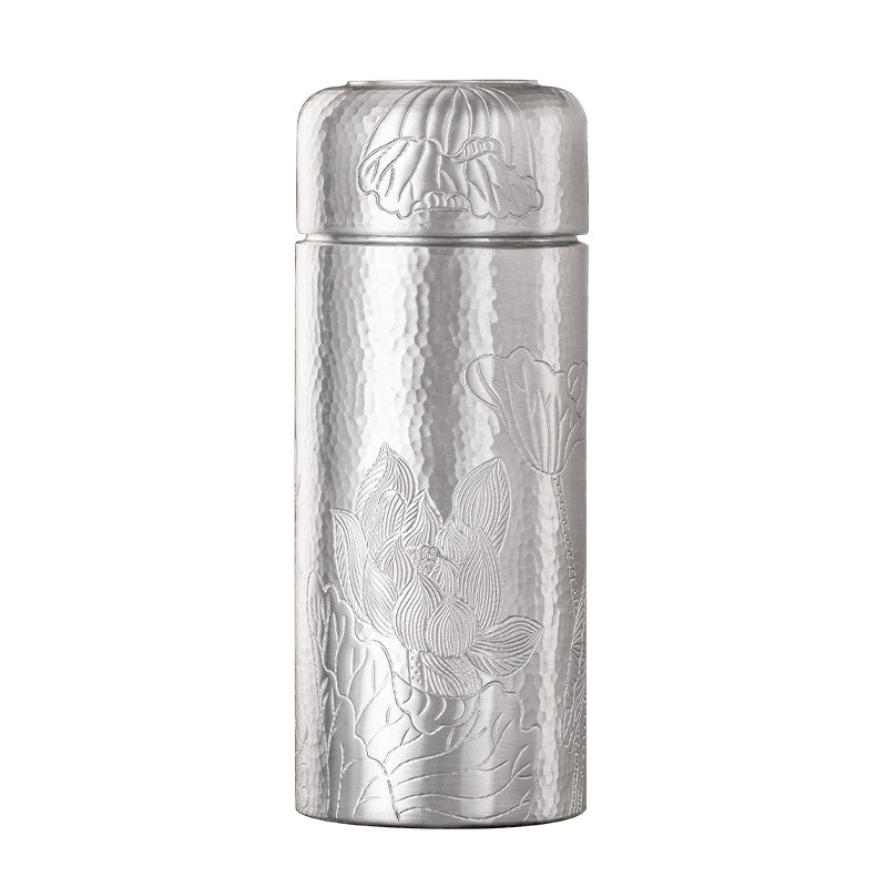 全银水杯999内外纯银纯手工一体雪花银杯保健杯九龙银杯足银茶杯由