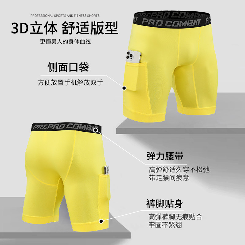 高弹骑行运动五分压缩训练裤 男速干篮球健身紧身裤 马拉松跑步短裤由
