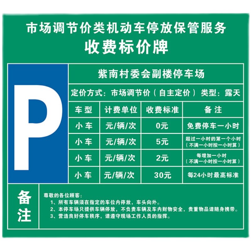 标志牌小区园区酒店停车收费牌 停车场收费公示牌指示牌缴费二维码由