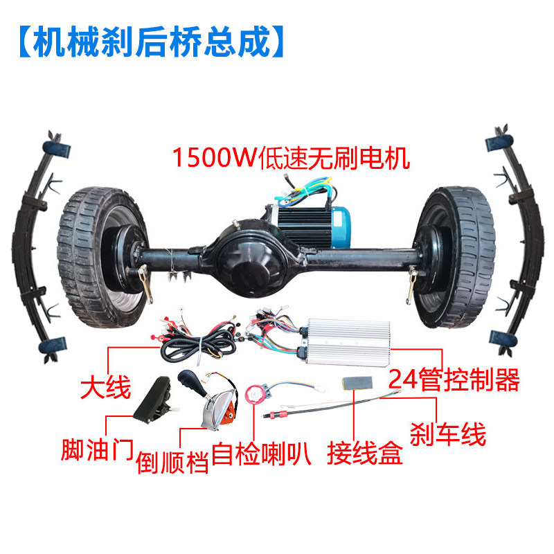 1吨型电动车后桥总成全套 配件大全 四轮车前桥转向方向盘电机改装