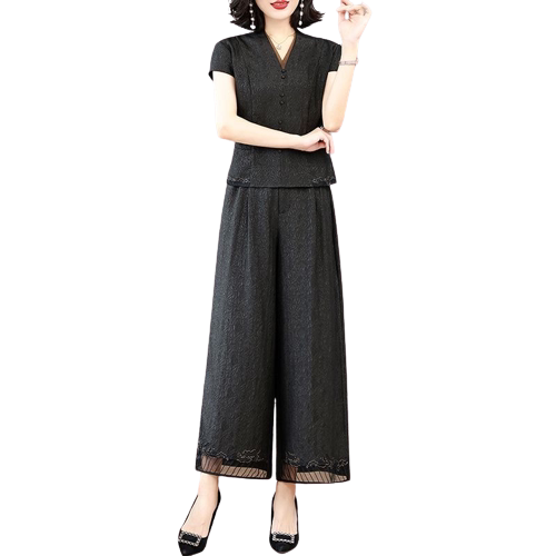 为您提供商品女气质显瘦遮肚子妈妈装 2026年夏季 新款 香云纱套装 两件套女 阔腿裤的详细介绍,