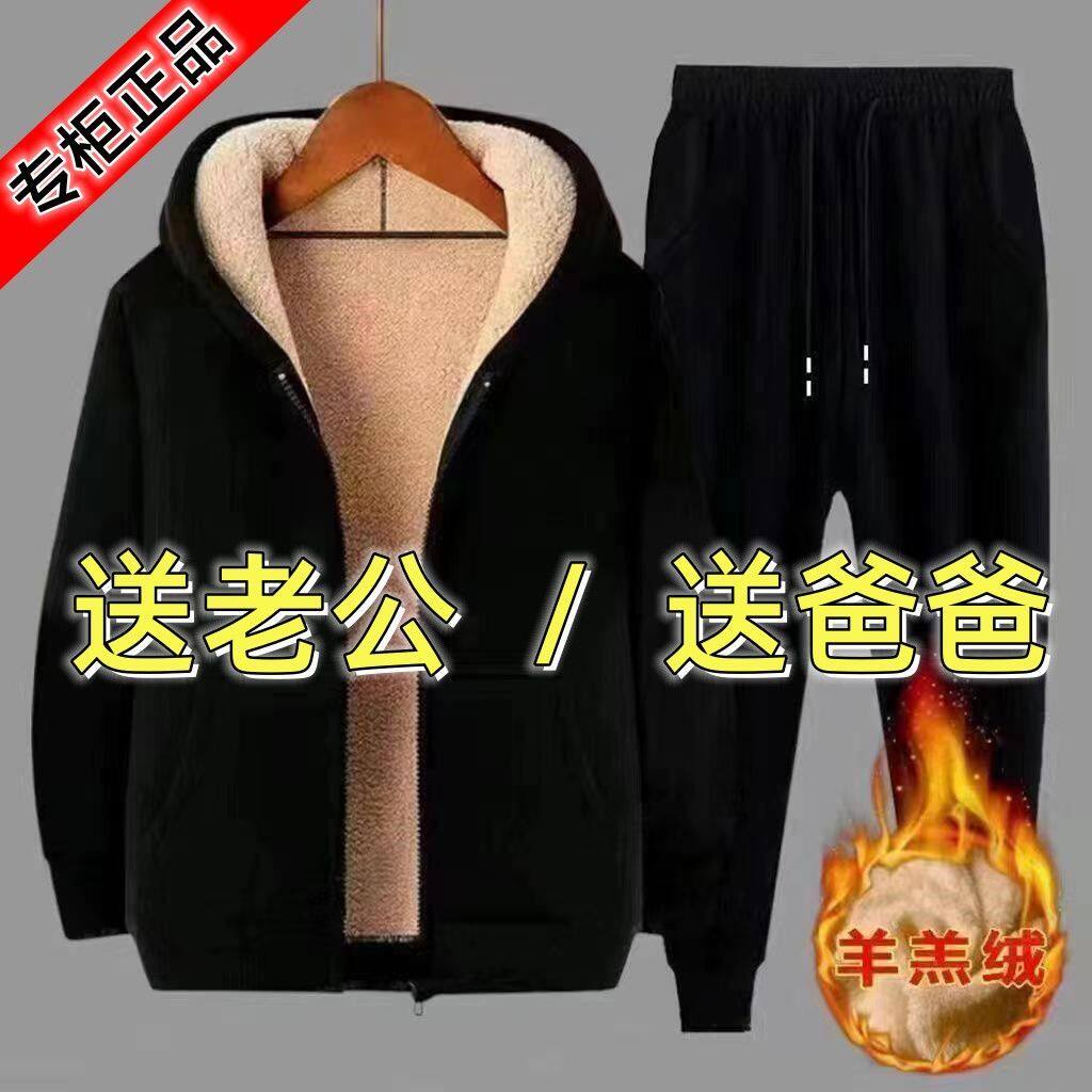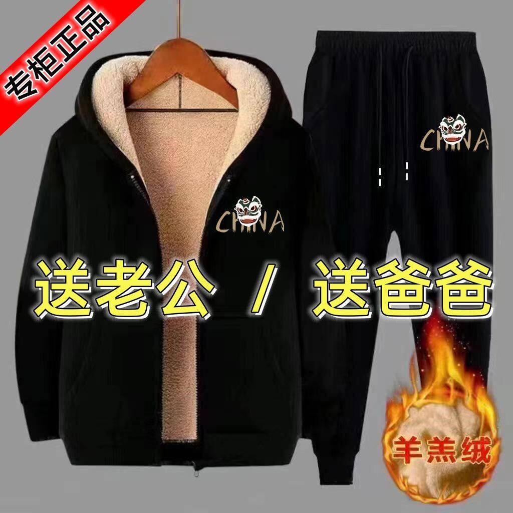 连帽保暖宽松休闲套装 外套 羊羔绒卫衣男加绒加厚开衫 买一送一由