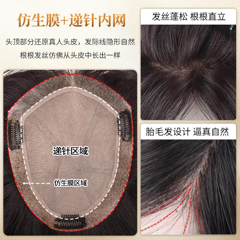 为您提供商品假发片女仿生膜递针无痕隐形增发量全真人发遮盖白发头顶补发块的详细介绍,