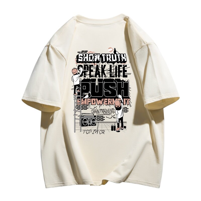 LA短袖 宽松百搭印花上衣白色11 T恤男女情侣落肩袖