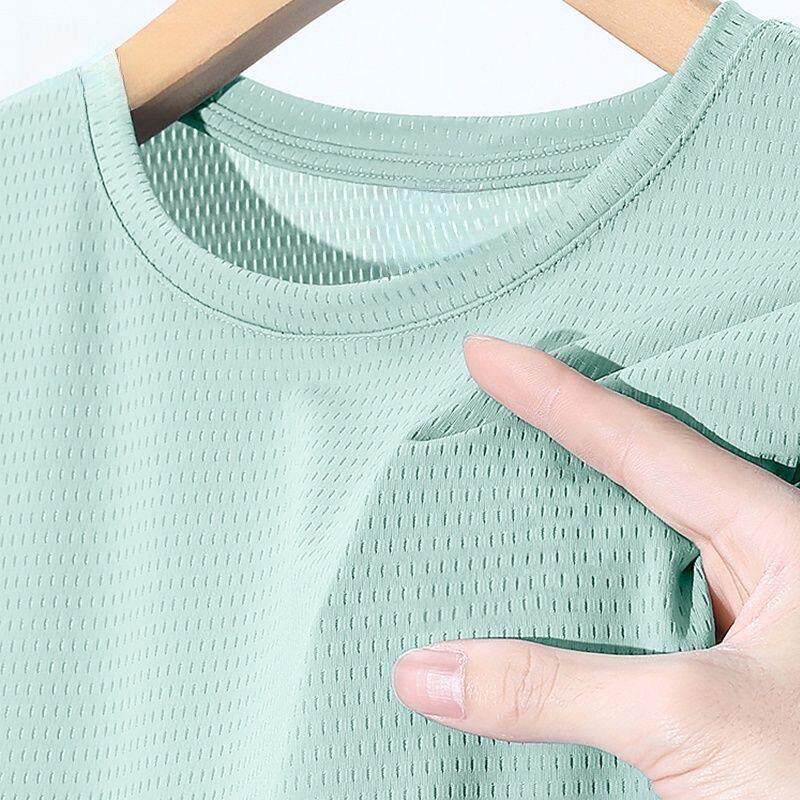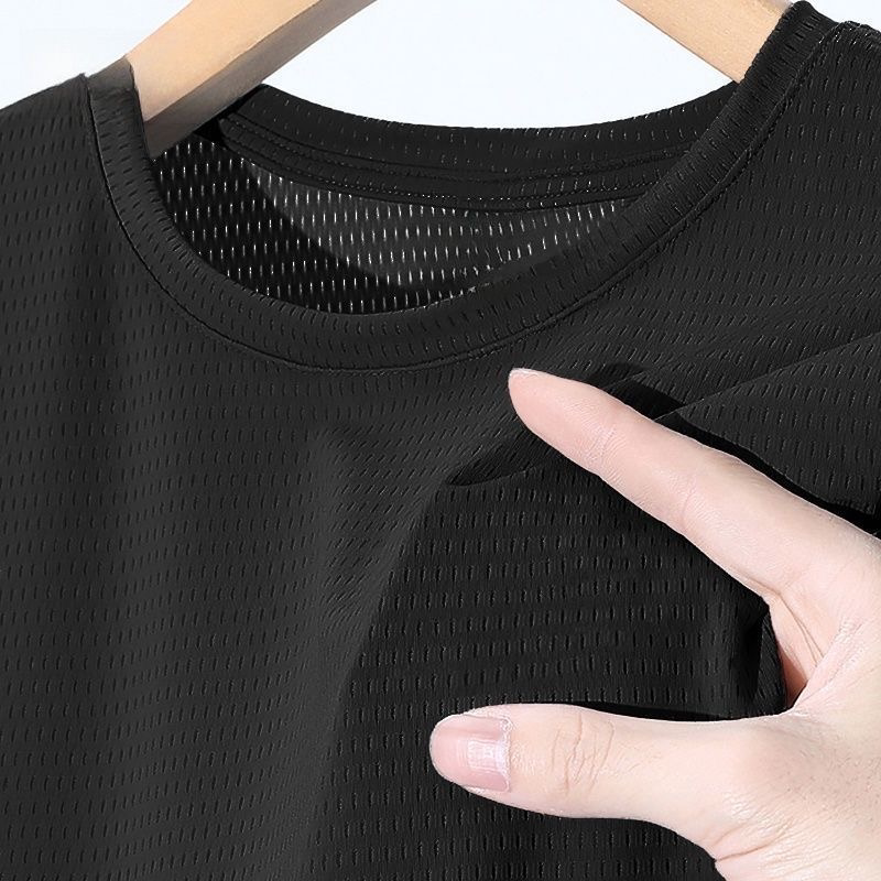 半袖 夏季 冰丝t恤男士 运动凉感网眼透气薄款 纯色上衣速干T 宽松大码由