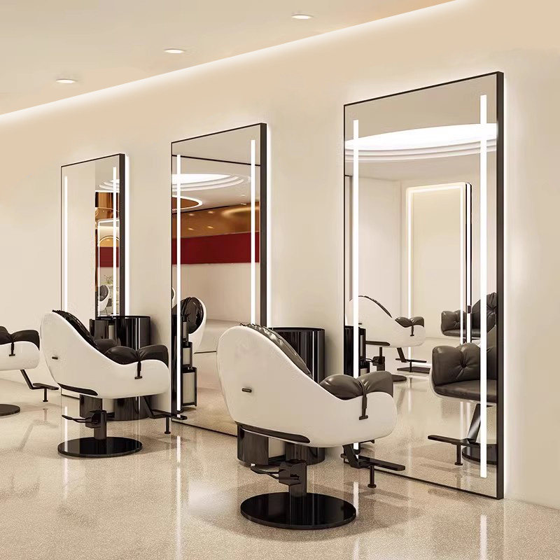 落地理发店镜子 网红美发店镜子带灯发廊专用理发镜台剪发镜壁挂式