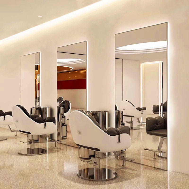 落地理发店镜子 网红美发店镜子带灯发廊专用理发镜台剪发镜壁挂式由