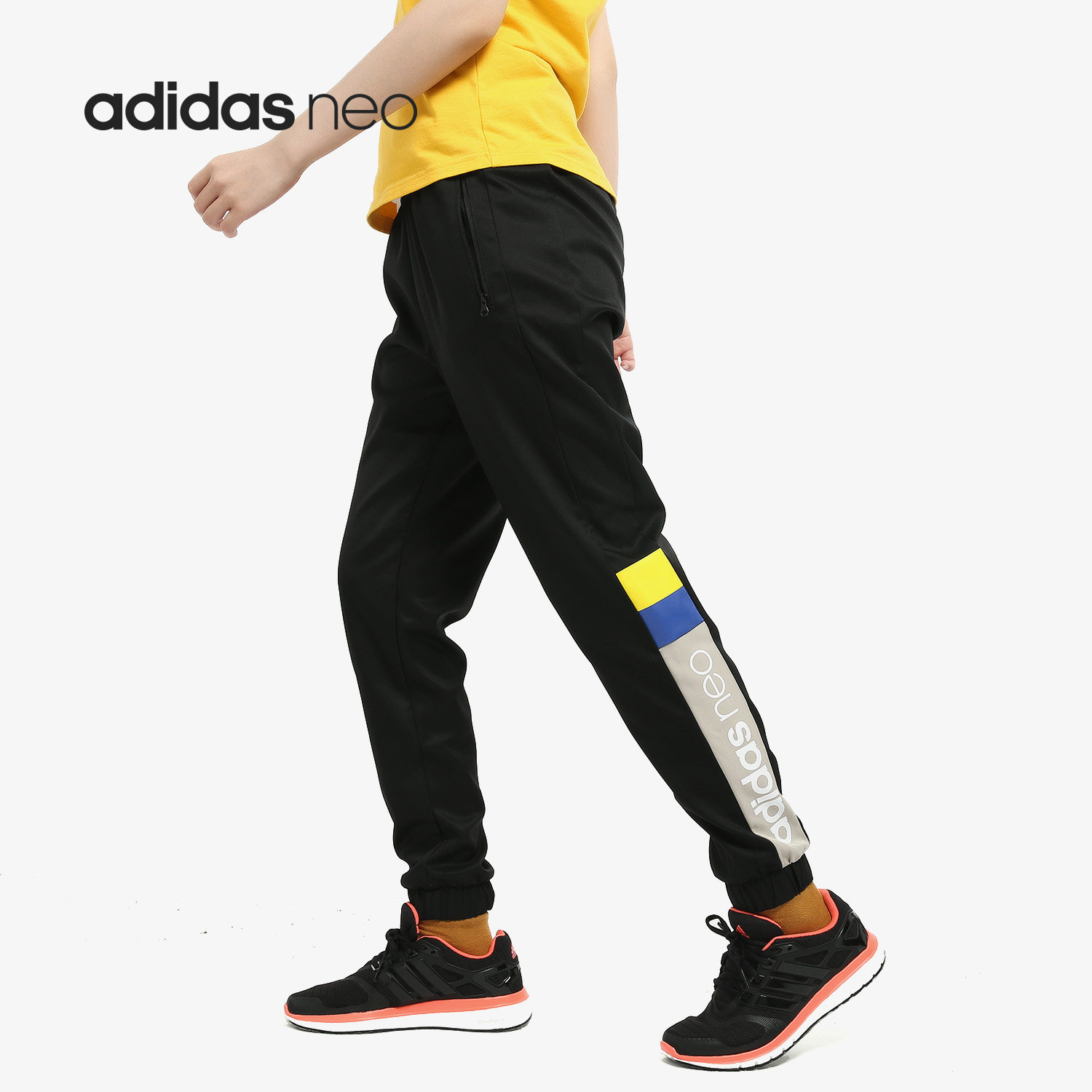 女宽松抽绳高腰直筒休闲瑜伽健身跑步训练撞色 奔跑吧卡卡运动长裤