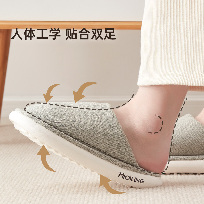 春秋防滑软底透气吸汗防臭室内地板拖鞋 女 男日式 回力居家亚麻拖鞋