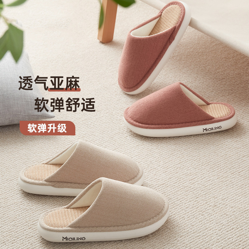 夏季 2025日式 复古亚麻特价 拖鞋 室内居家透气静音防滑 情侣家居新款