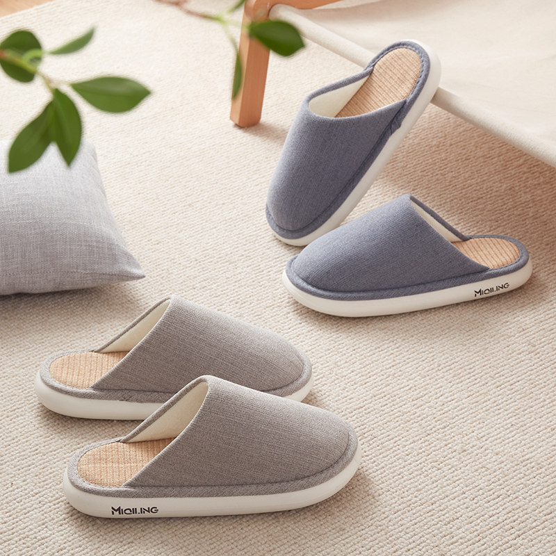 远港亚麻拖鞋 防滑防臭布艺吸汗棉麻木地板男春秋 女室内居家居四季