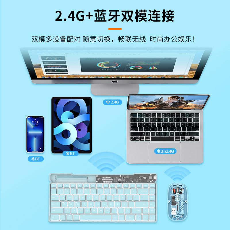 为您提供商品无线蓝牙键盘鼠标套装 透明女生办公游戏静音平板三模键盘 新品 爆款的详细介绍,