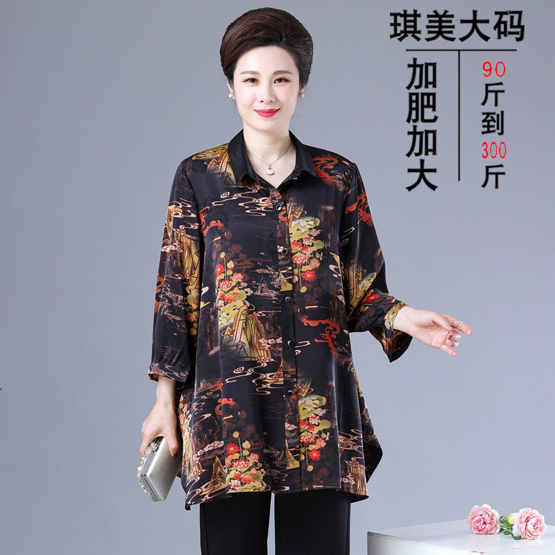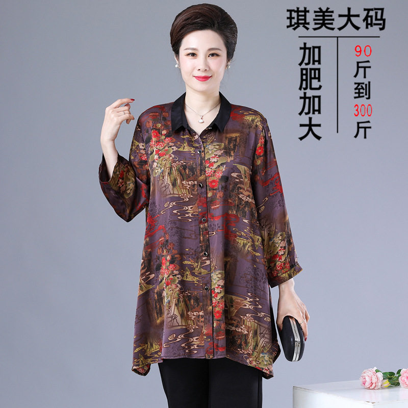 奶奶衬衣宽松夏装 大码 加肥加大妈妈装 高贵小衫 200斤中老年人衬衫由