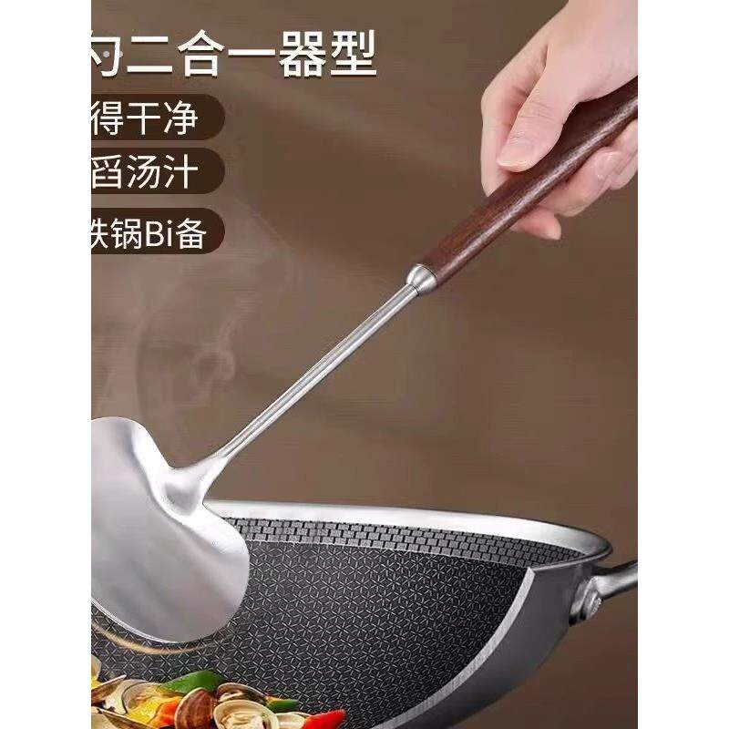 勺铁锅专用 树可胡桃木蘑菇铲子锅铲不锈钢小号家用炒勺铁铲炒菜