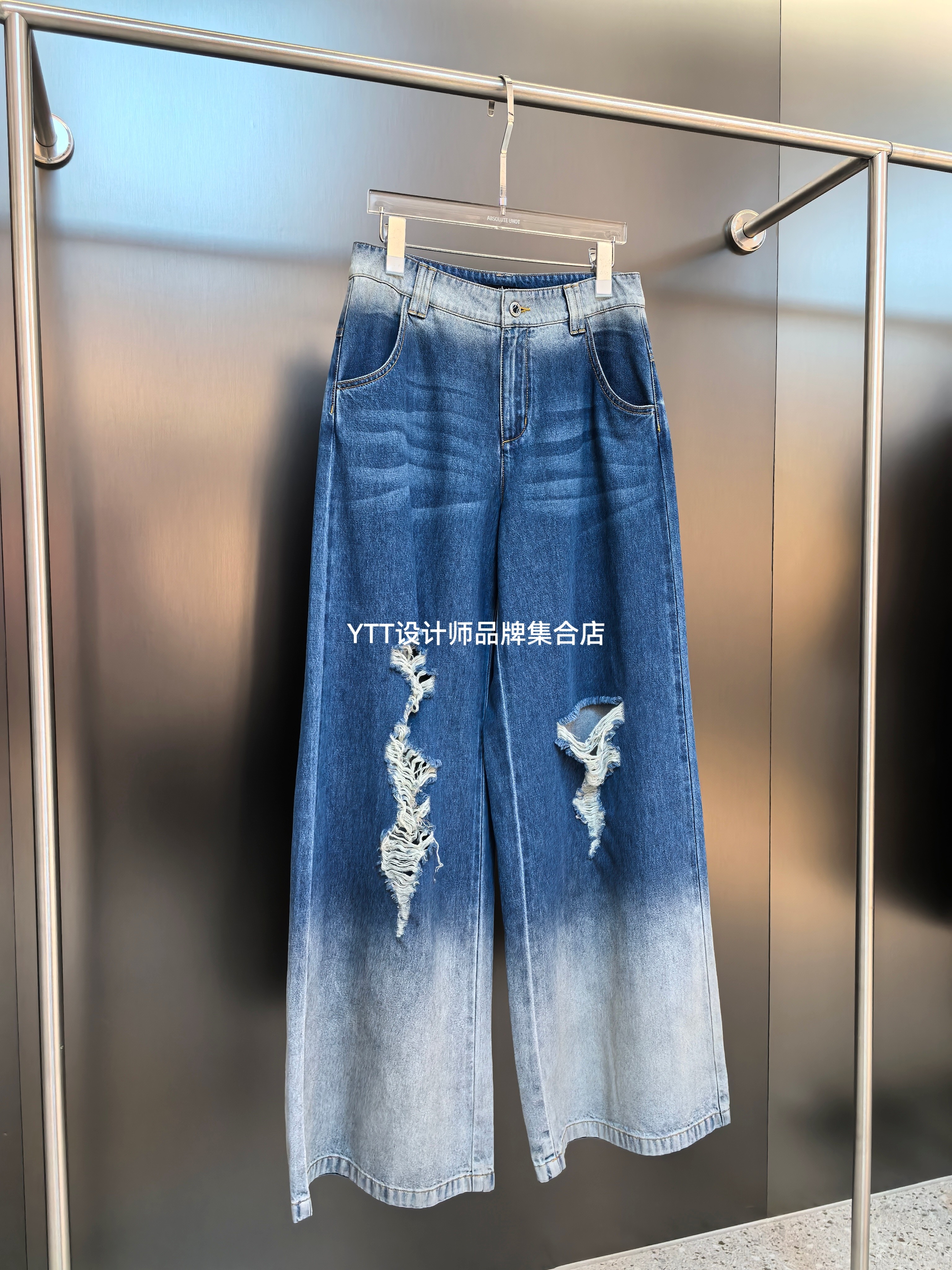 uhot诱货2026夏季 UHOT 包邮 破洞微宽松渐变牛仔裤 阔腿裤 新款 顺丰由