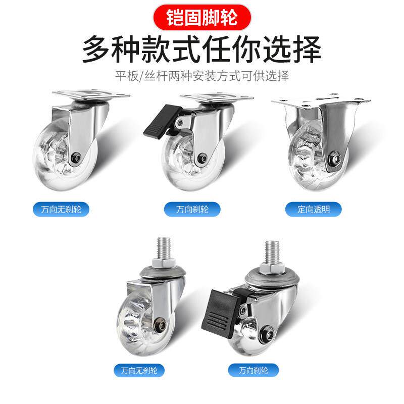 透明静音家俱万向轮轮子2寸3寸转向煞车小滑轮通用聚氨酯丝杆脚轮由