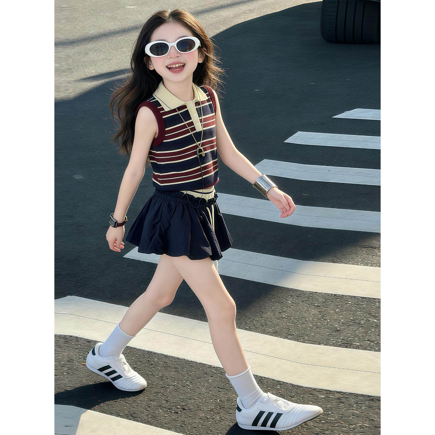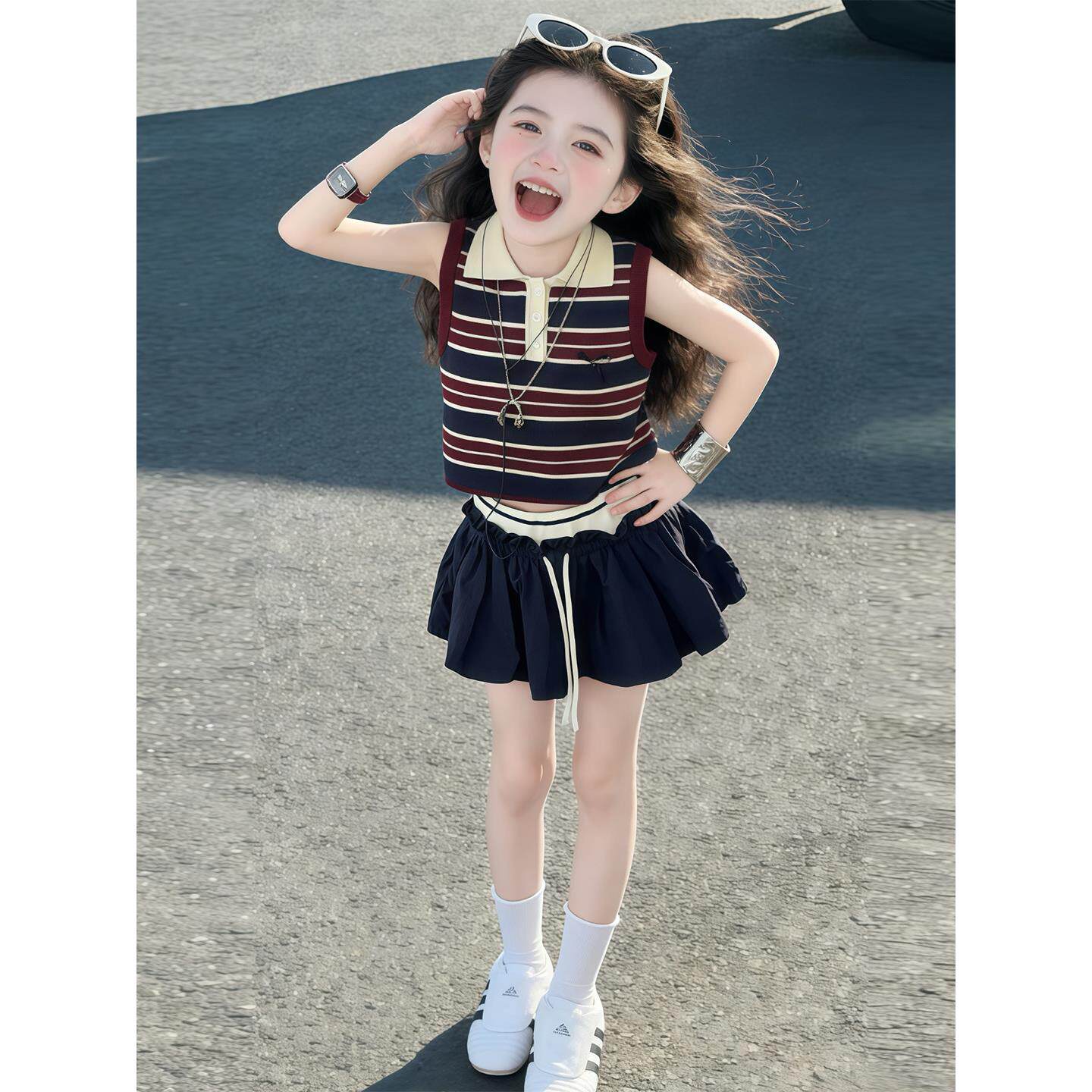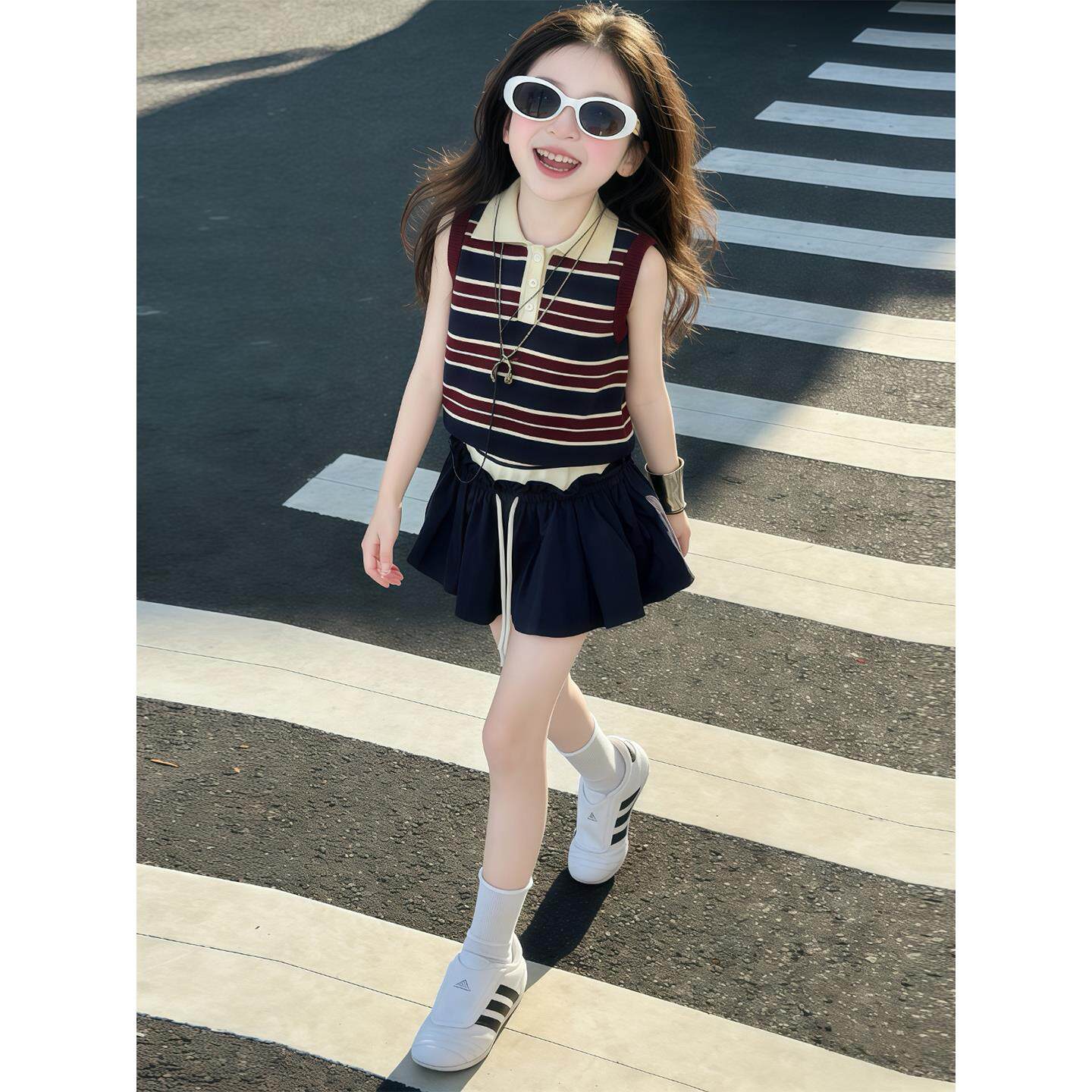 洋气时尚 女童夏季 条纹背心泡泡裙两件套 儿童韩版 2026新款 薄款 套装由