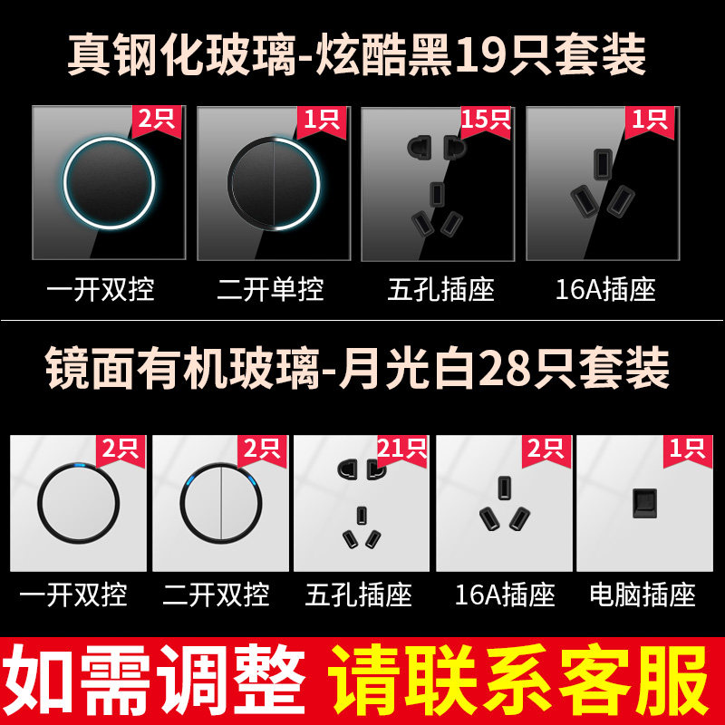 黑色玻璃86型开关家用墙壁暗装 全屋套餐多孔面板 带5五孔插座墙式由