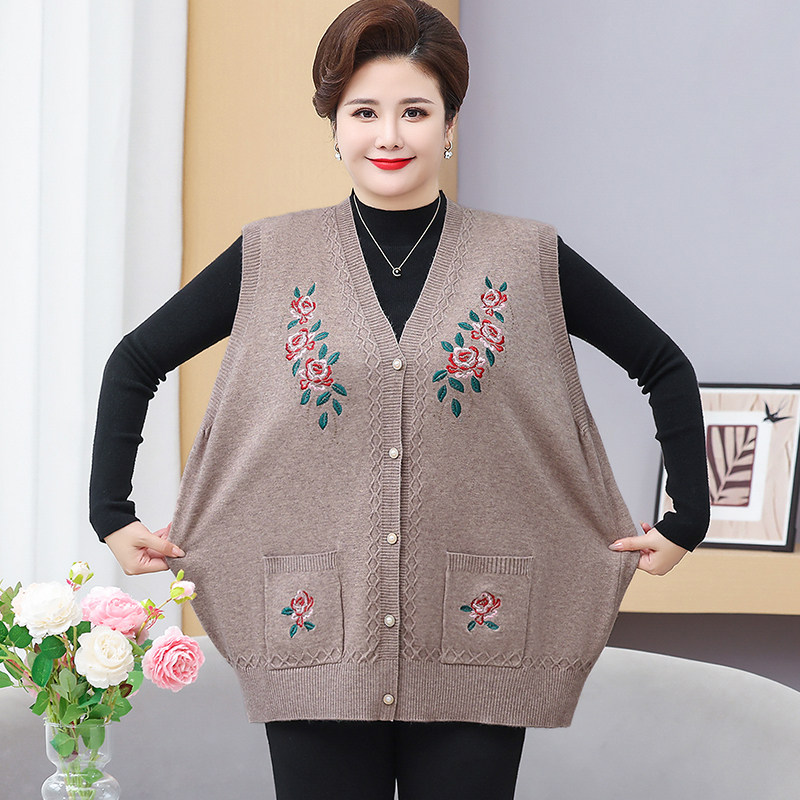 为您提供商品毛衣马夹胖奶奶加肥加宽针织坎肩妈妈打底衫 马甲 女装 老年人特大码的详细介绍,