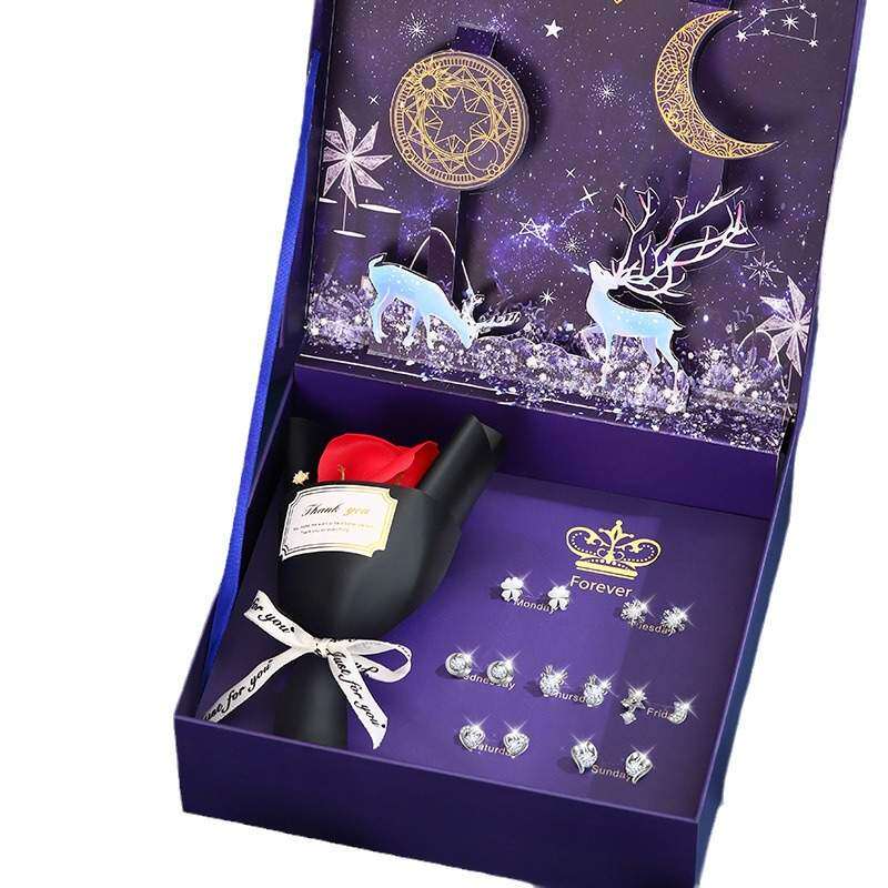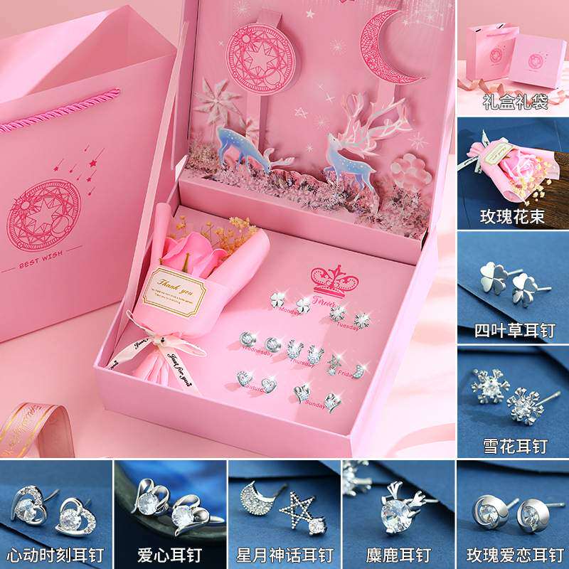 特别高级创意实用生日礼物女生 情人节礼物送女友925一周耳钉套装