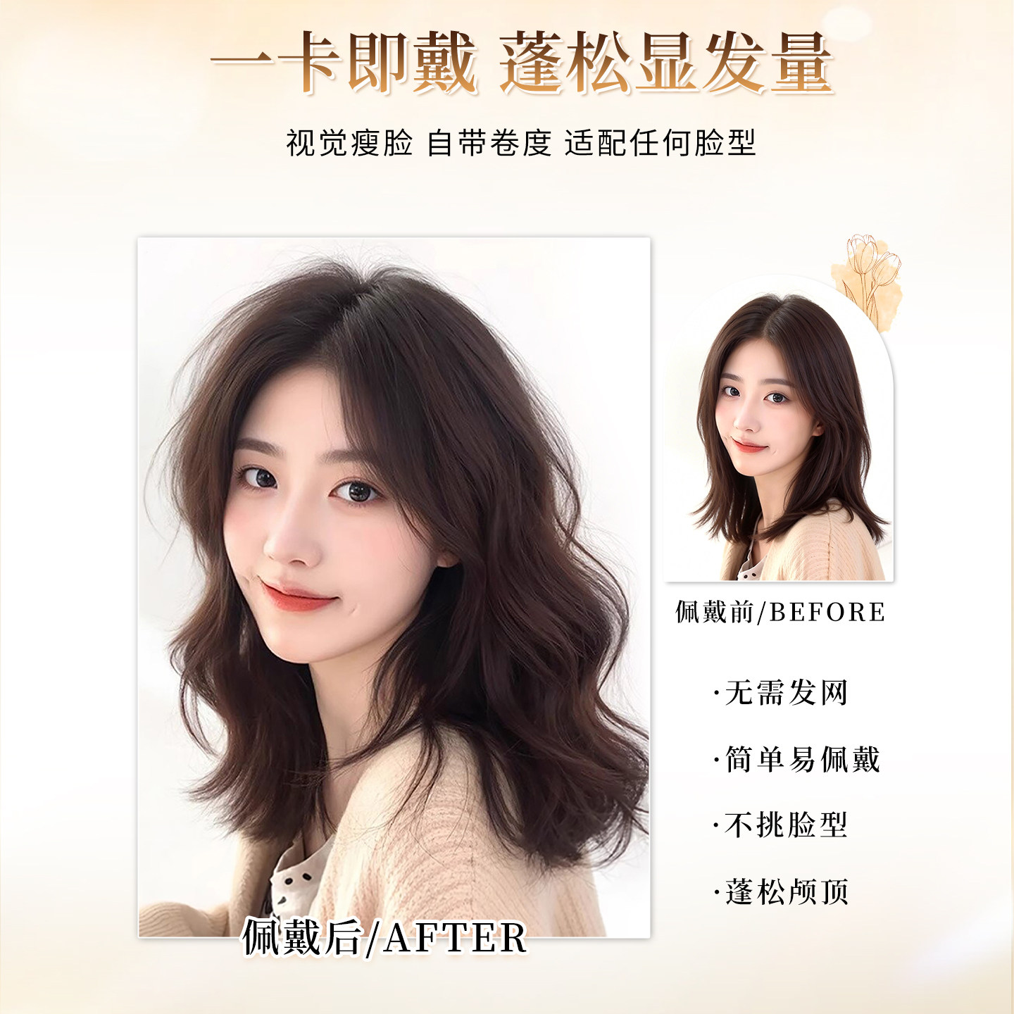 不用戴发网假发女片头顶补发蓬松仿真发增发遮白发自然无痕卷发片