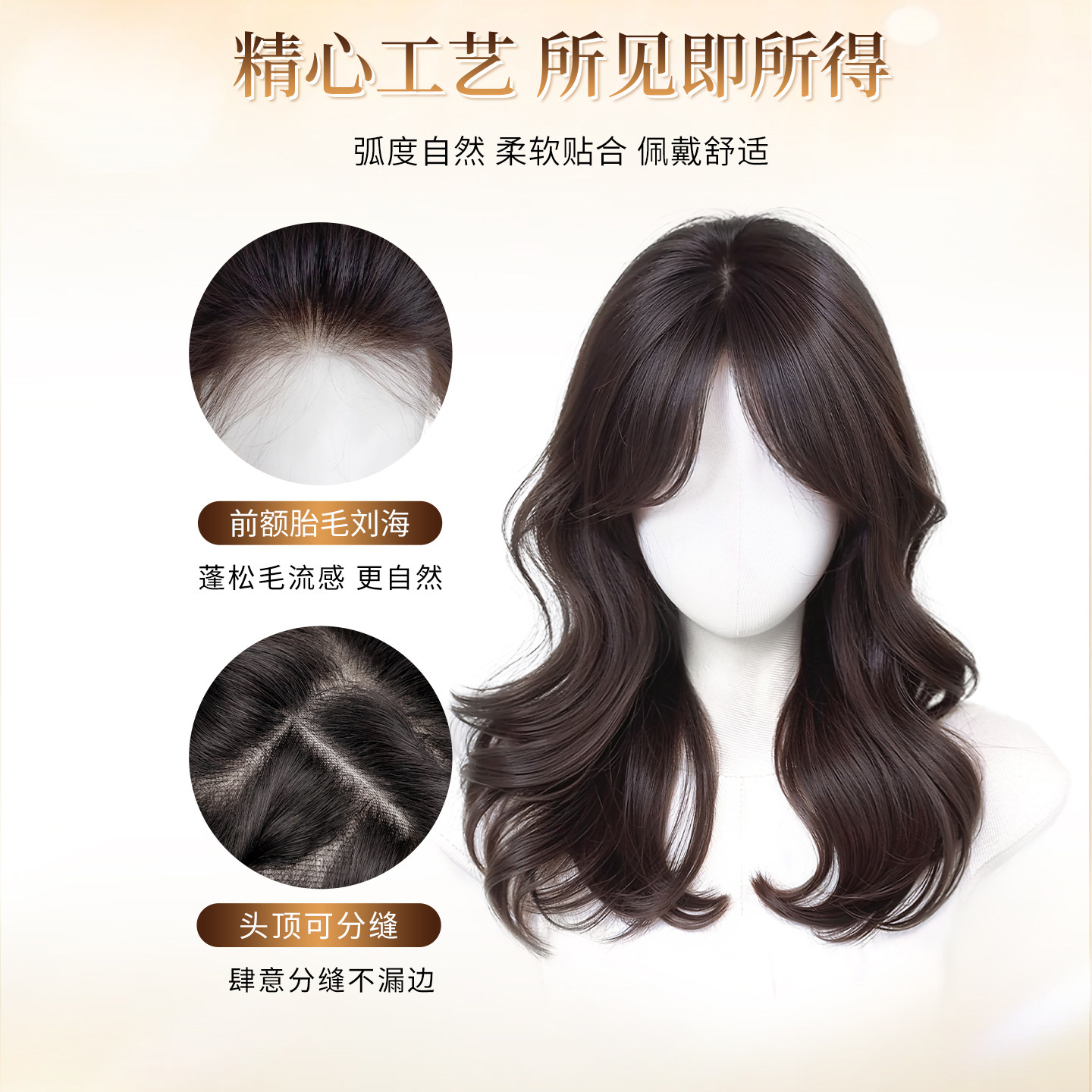 为您提供商品不用戴发网假发女片头顶补发蓬松仿真发增发遮白发自然无痕卷发片的详细介绍,