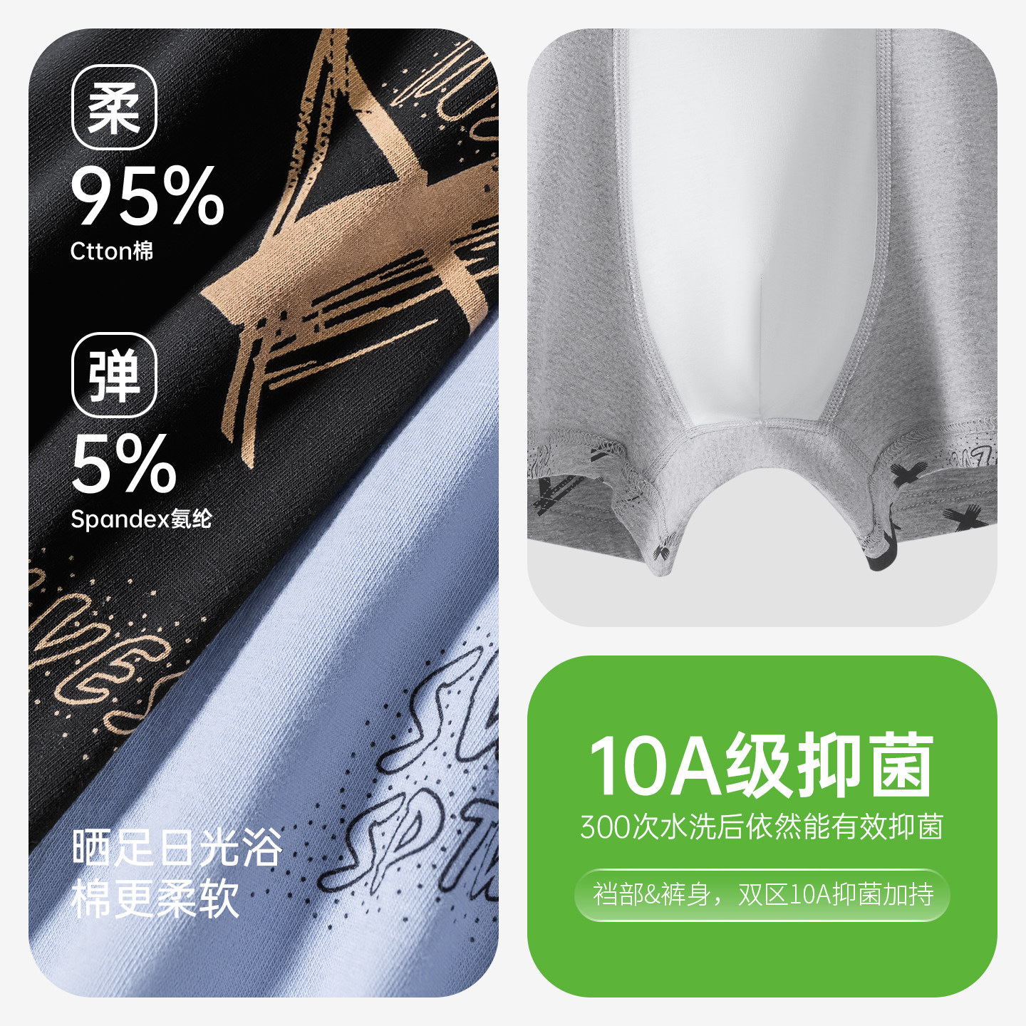 2026新款 南极人内裤 男款 头纯棉裆夏薄款 男士 冰丝男生四角平角短裤