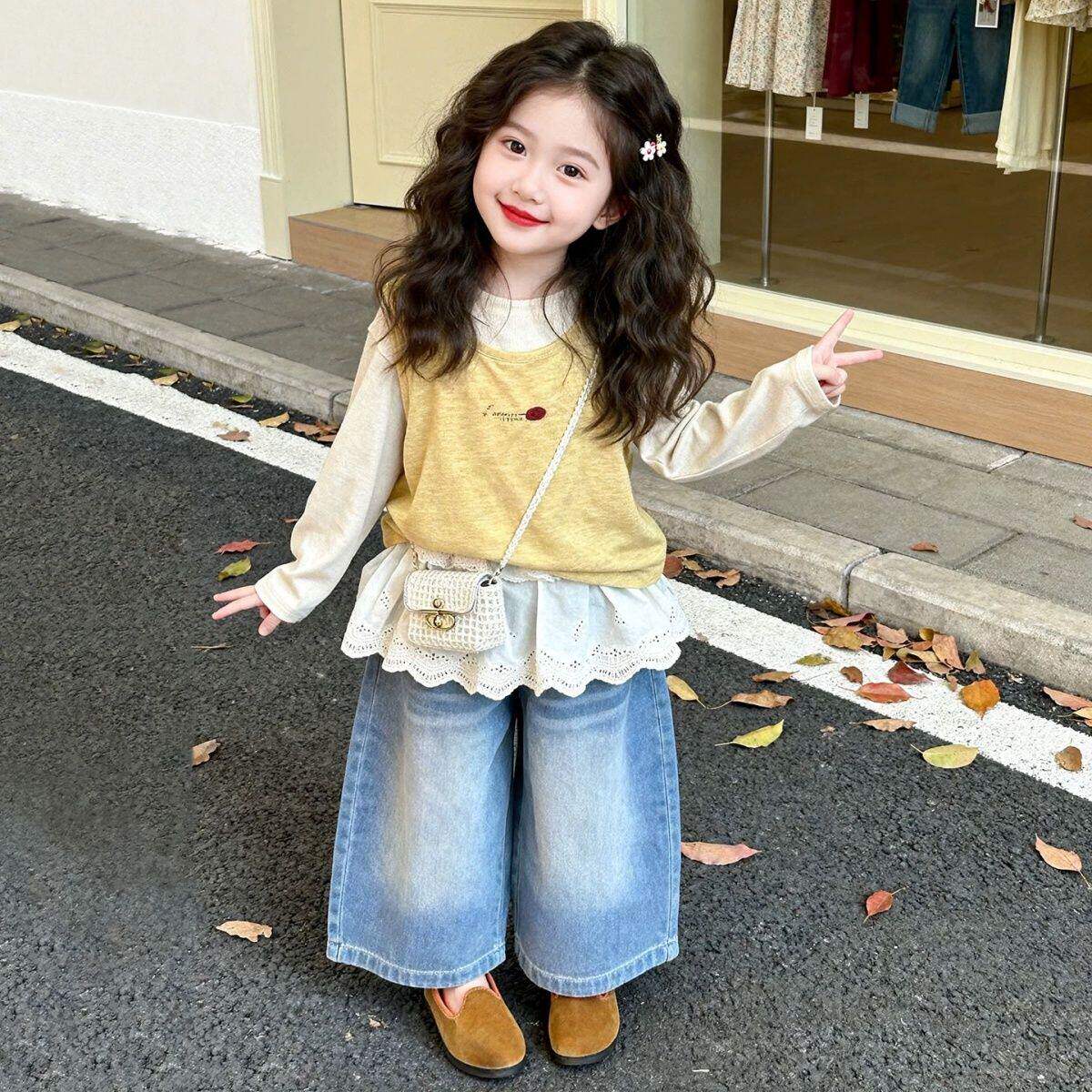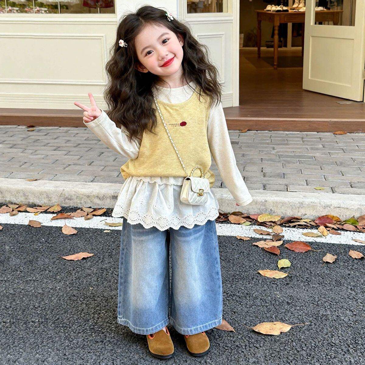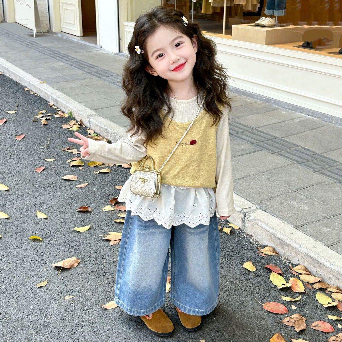 为您提供商品女童2026春秋新款 屁帘牛仔裤 洋气宝宝三件套装 针织吊带背心打底衫的详细介绍,