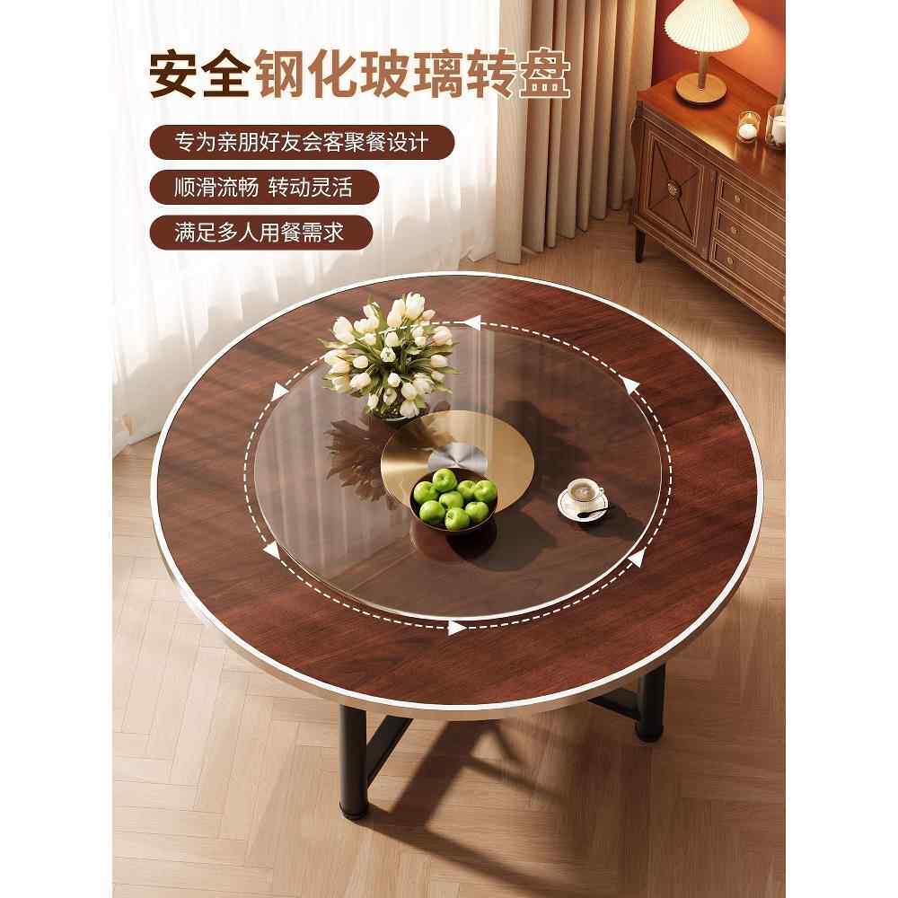 实木餐桌圆形大圆桌家用小户型吃饭桌子旋转盘圆桌圆桌面可折叠